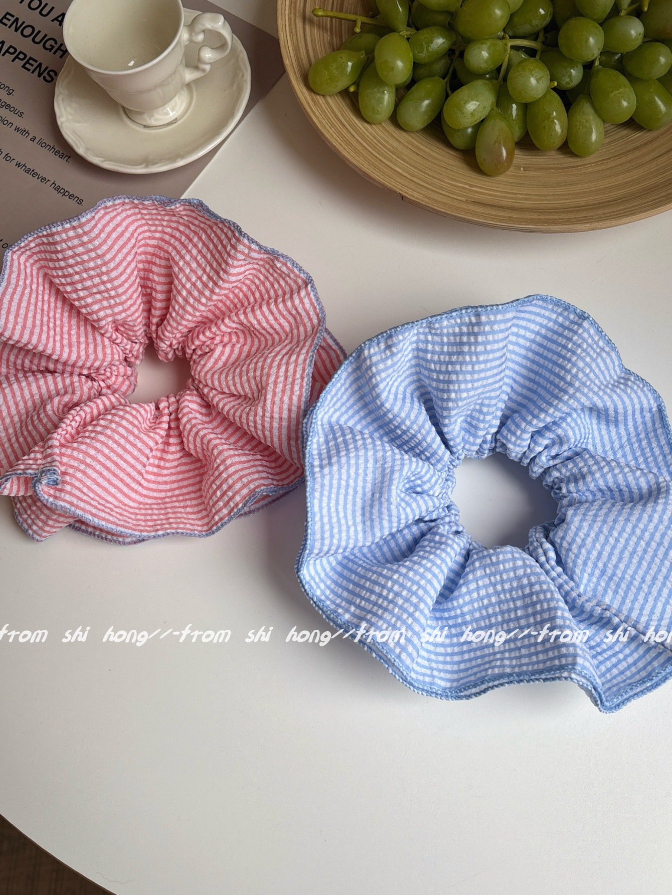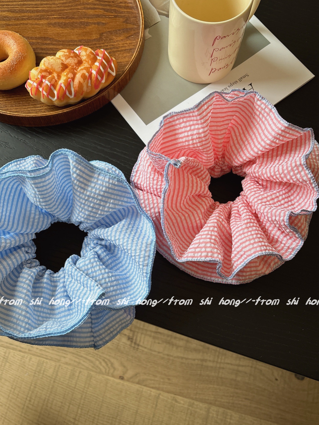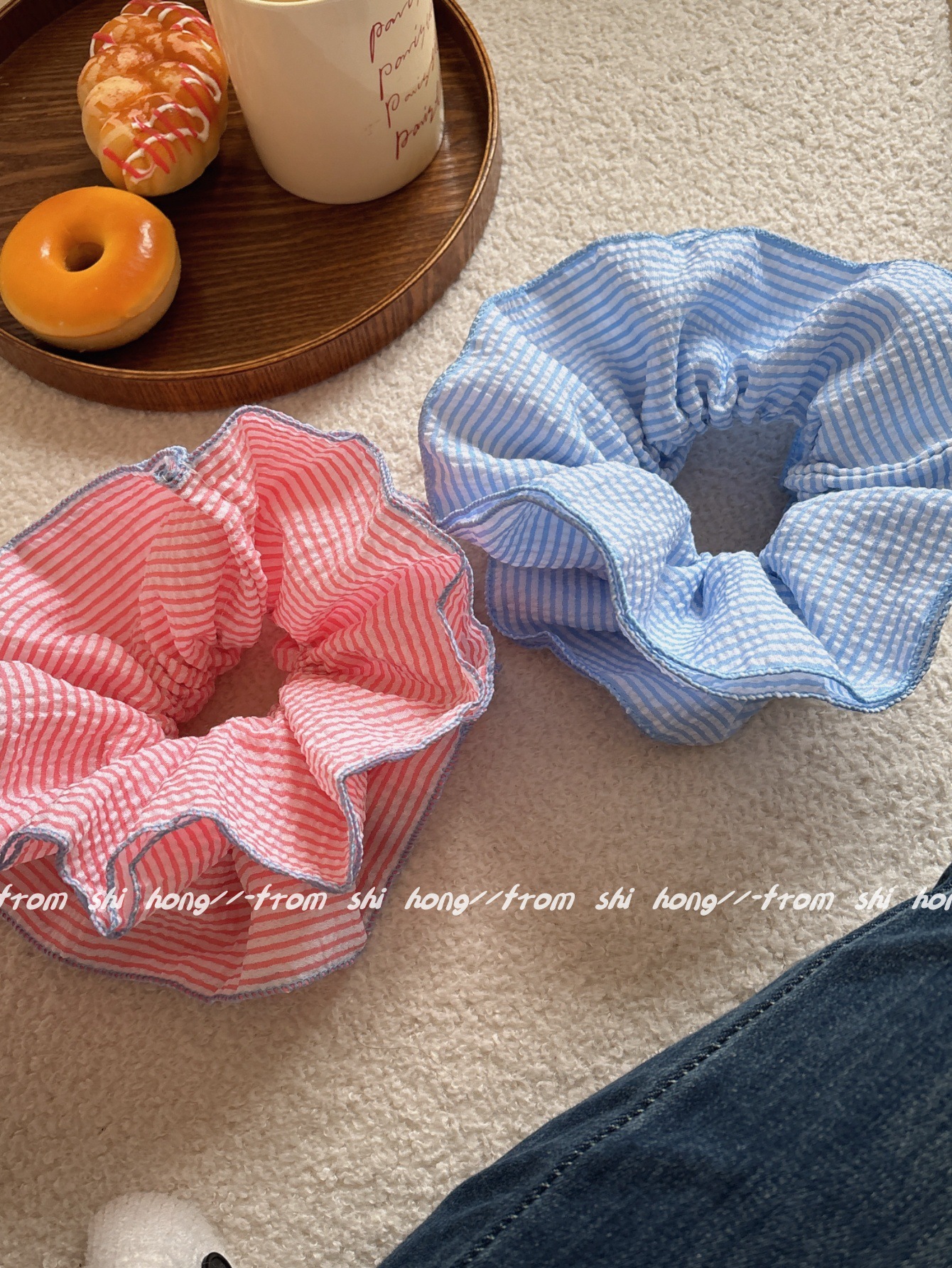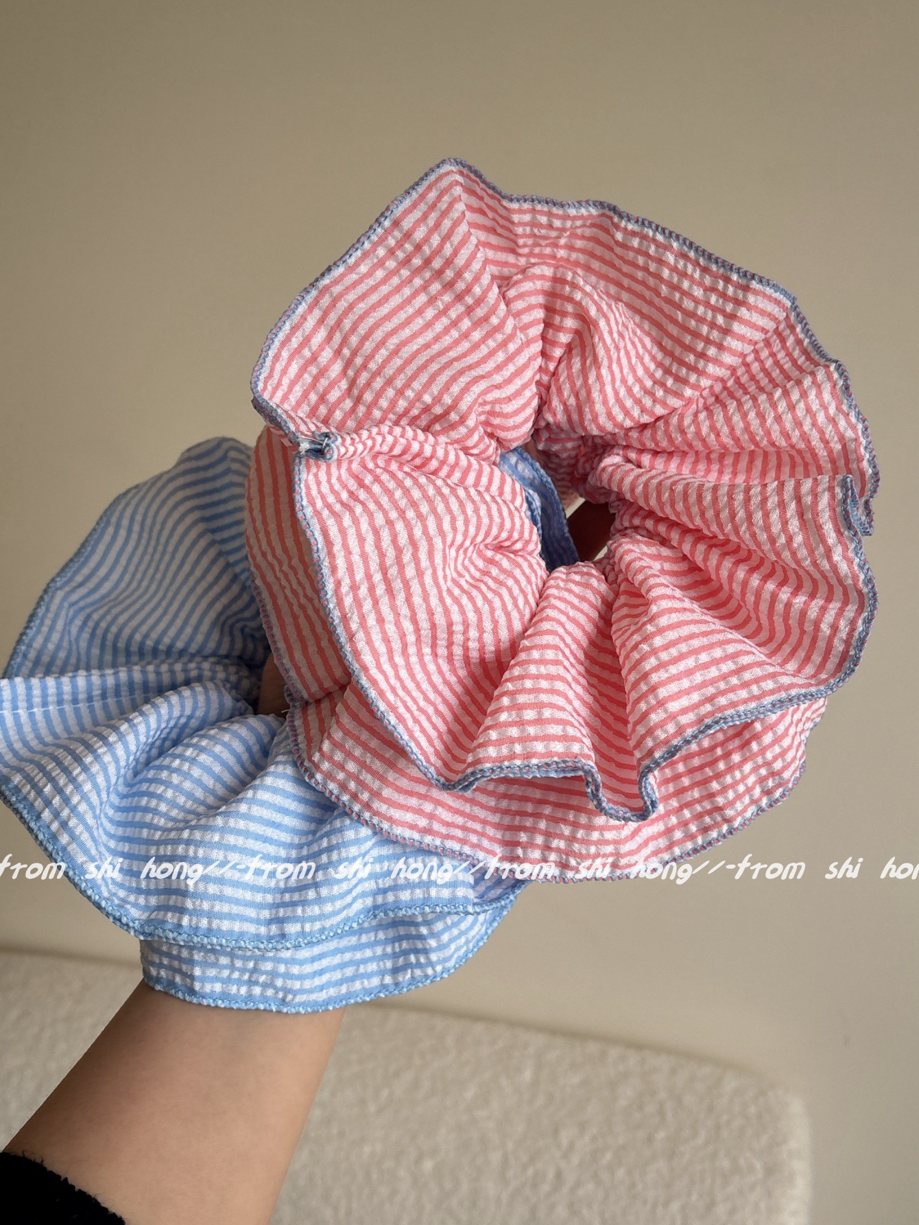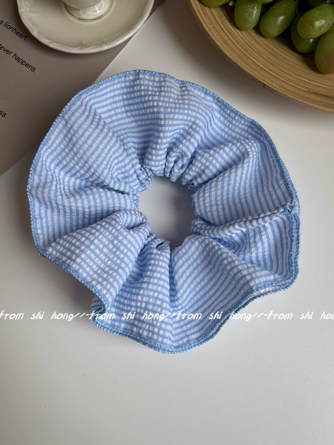 • 파란색 줄무늬 4겹 머리끈