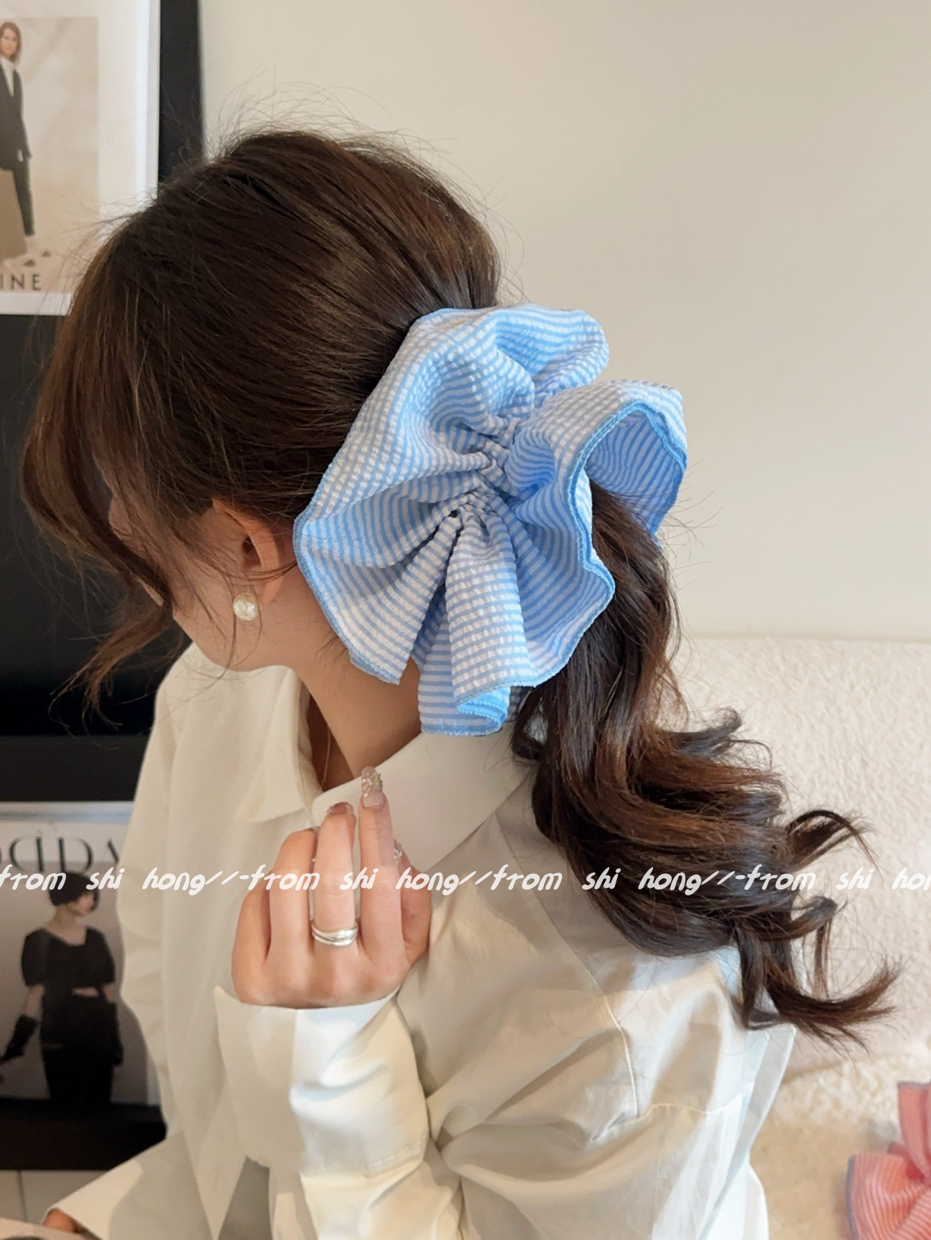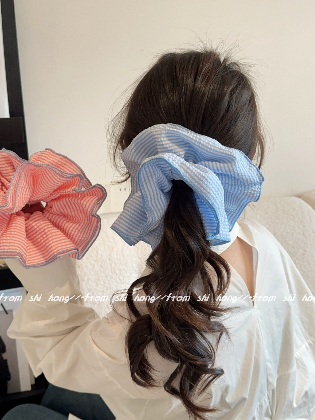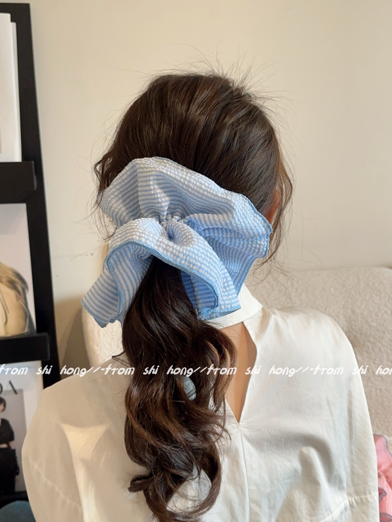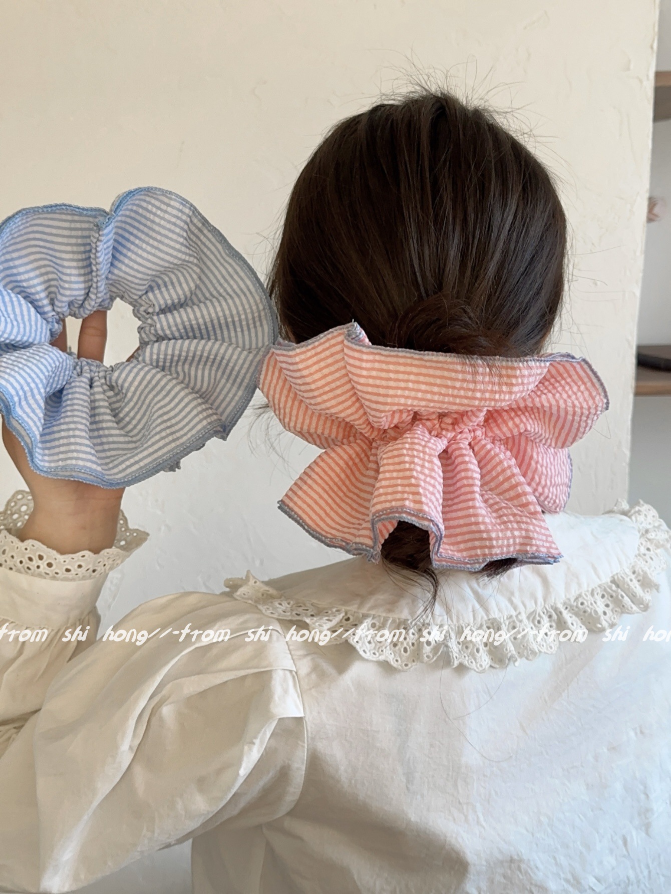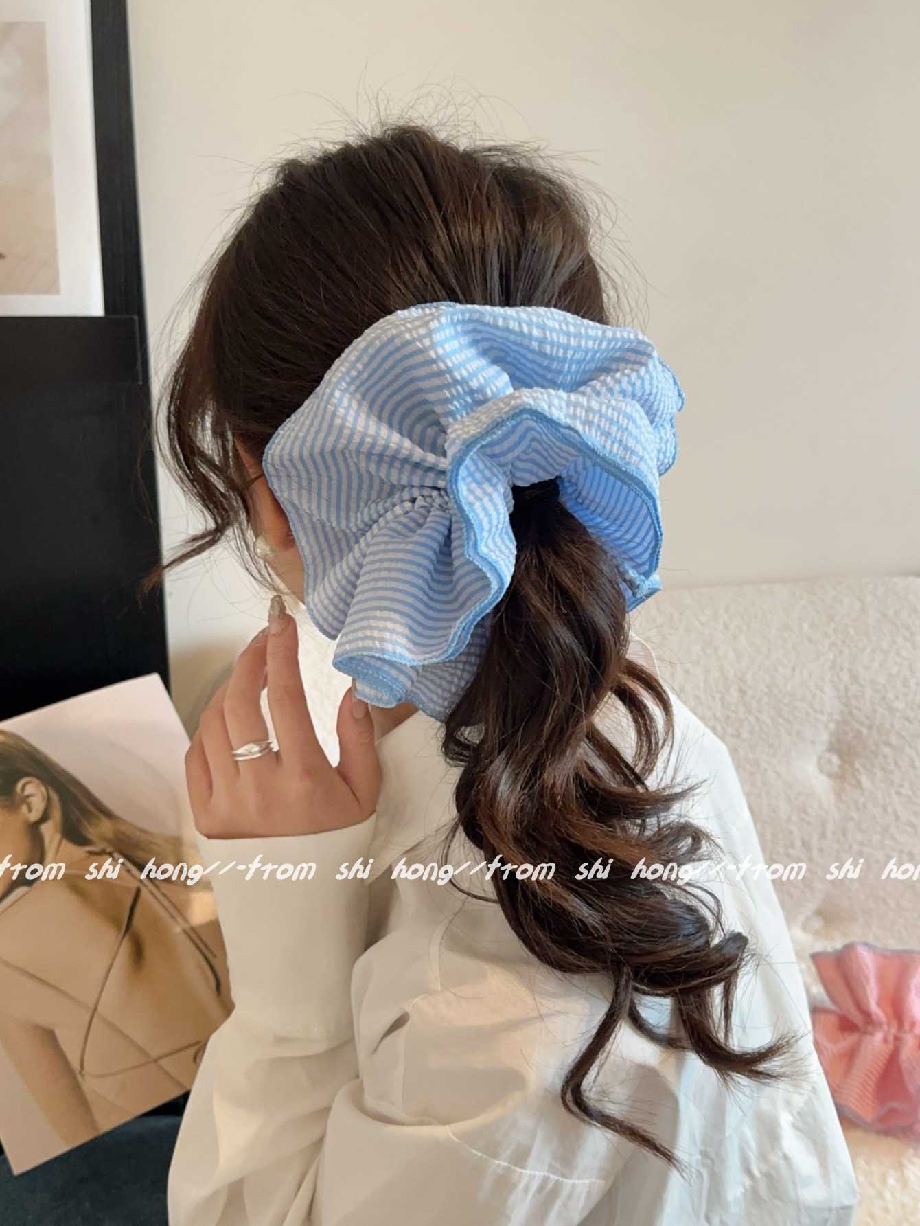 • 파란색 줄무늬 4겹 머리끈