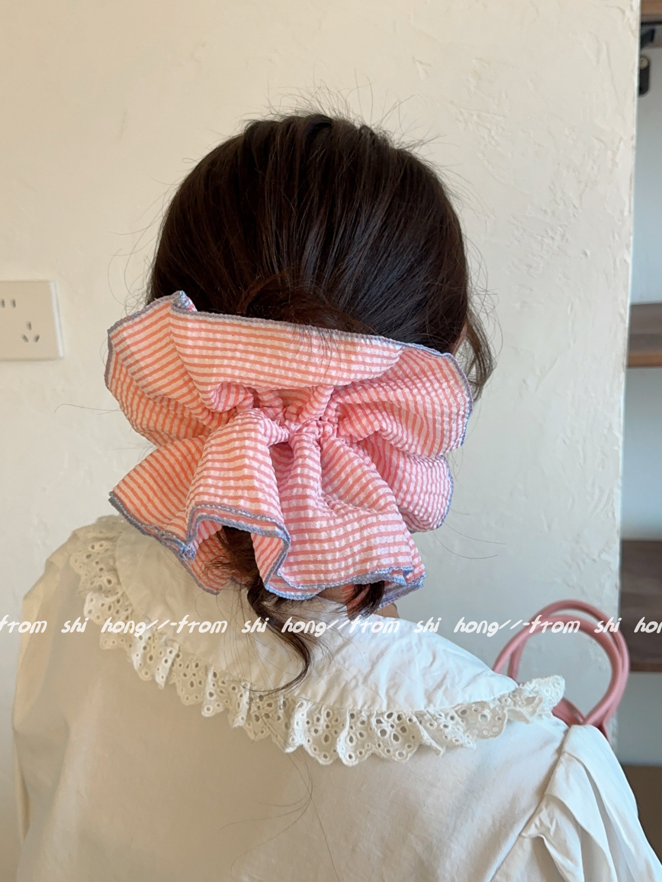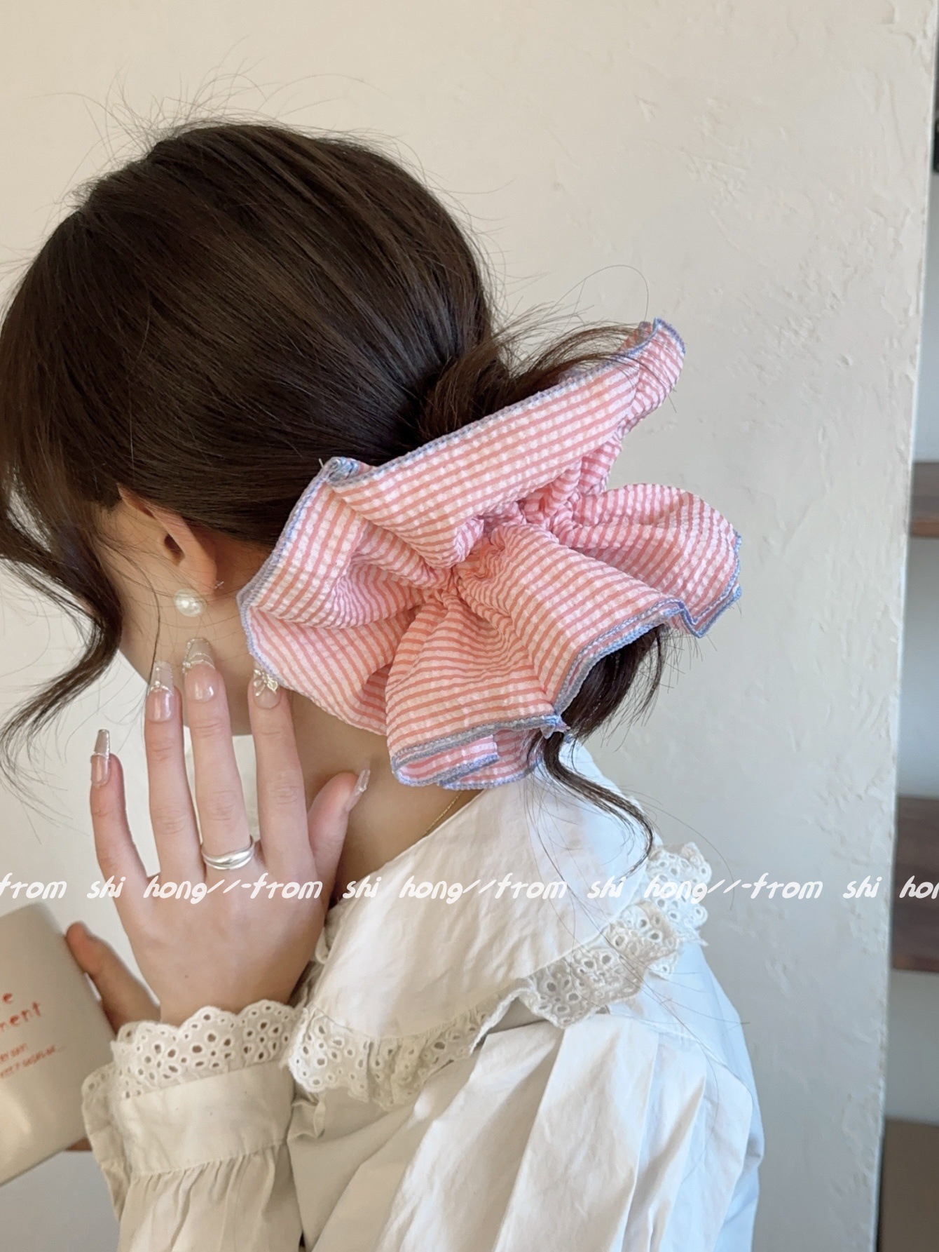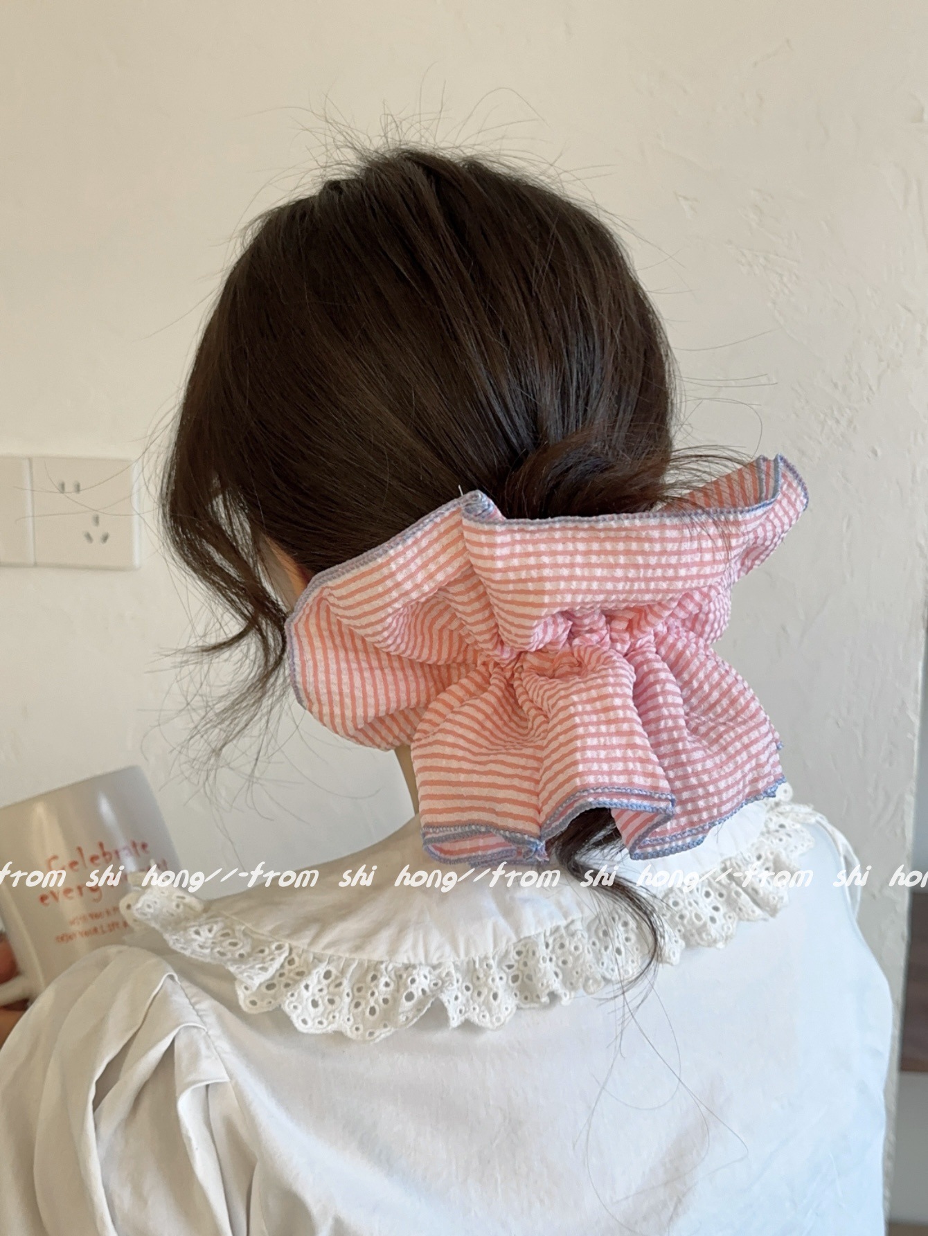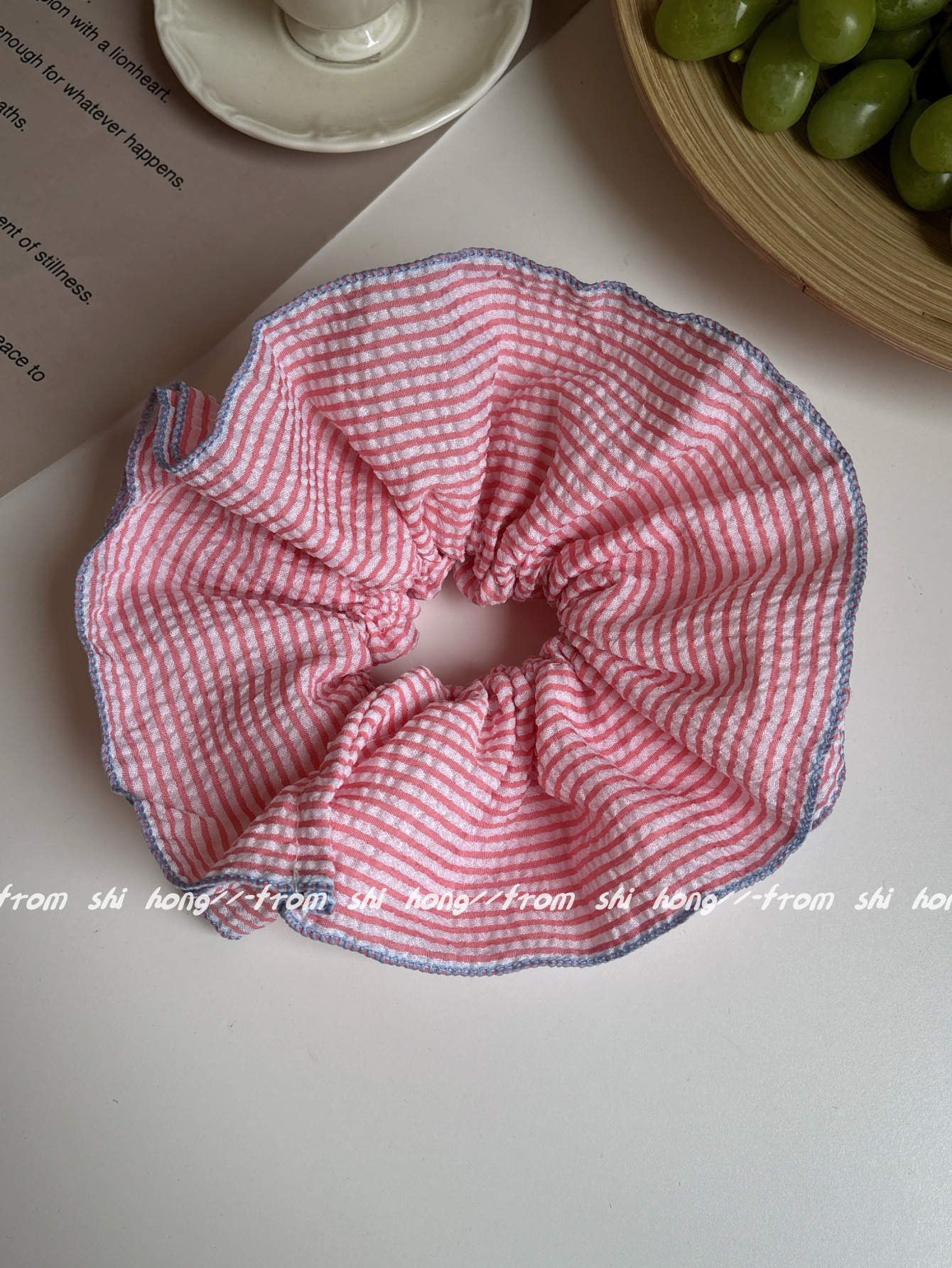 • 핑크 스트라이프 4겹 머리끈
