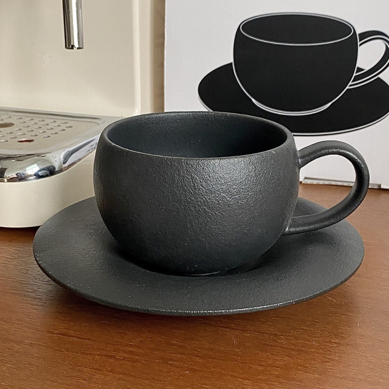 • 블랙 반투명 스톤 패턴 컵과 접시 300ML