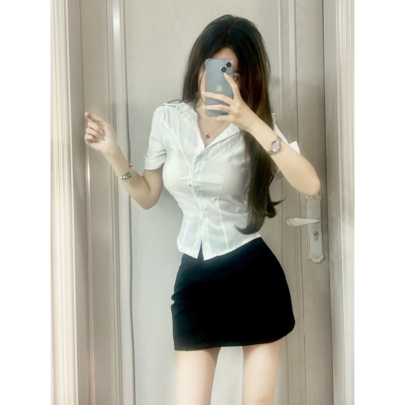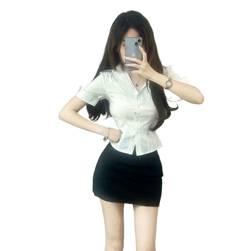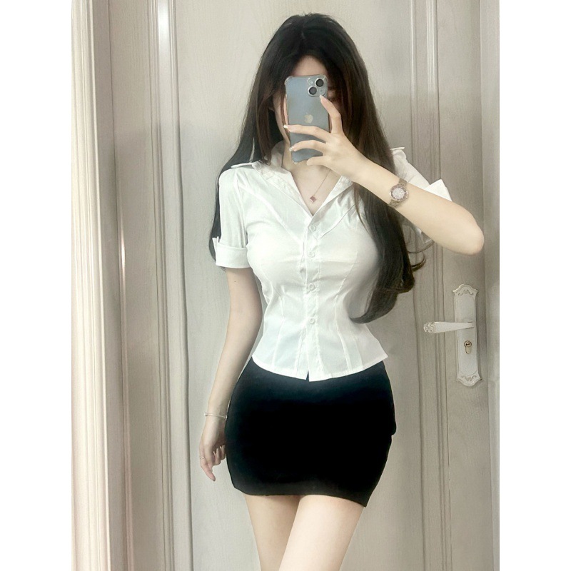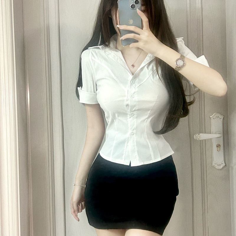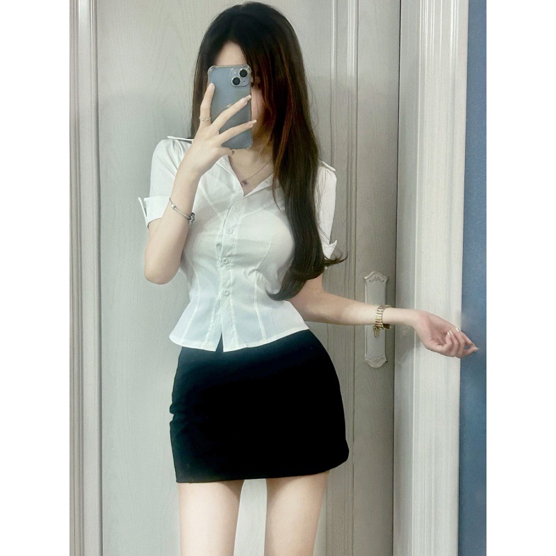 • [화이트 셔츠 + 블랙 힙 스커트]
