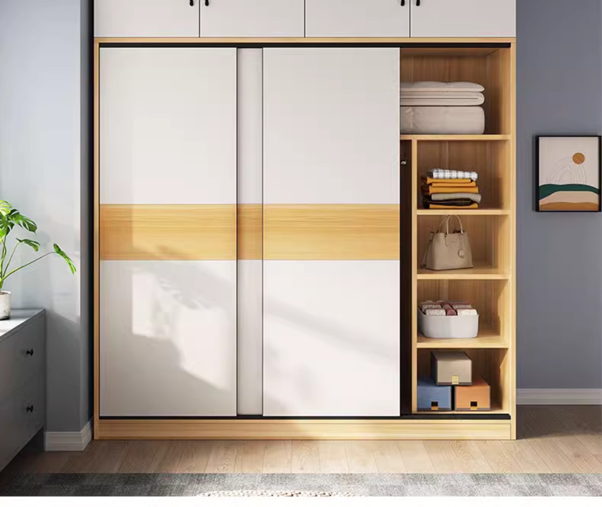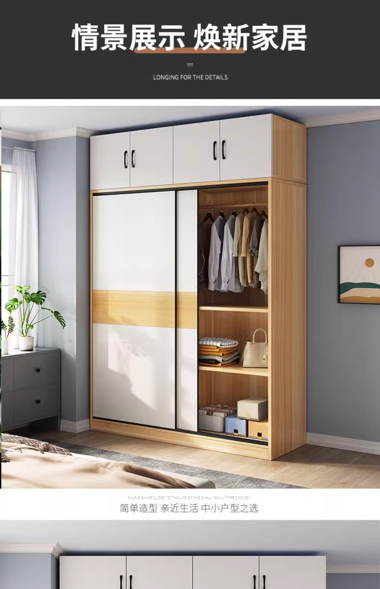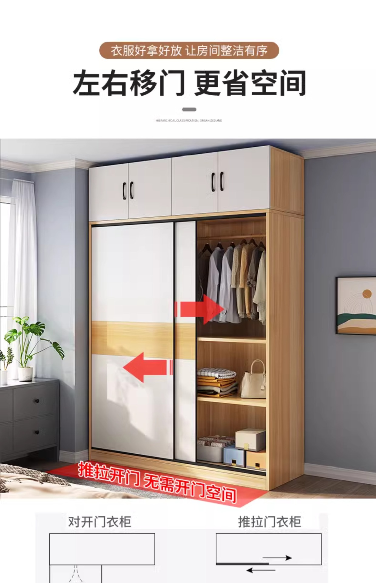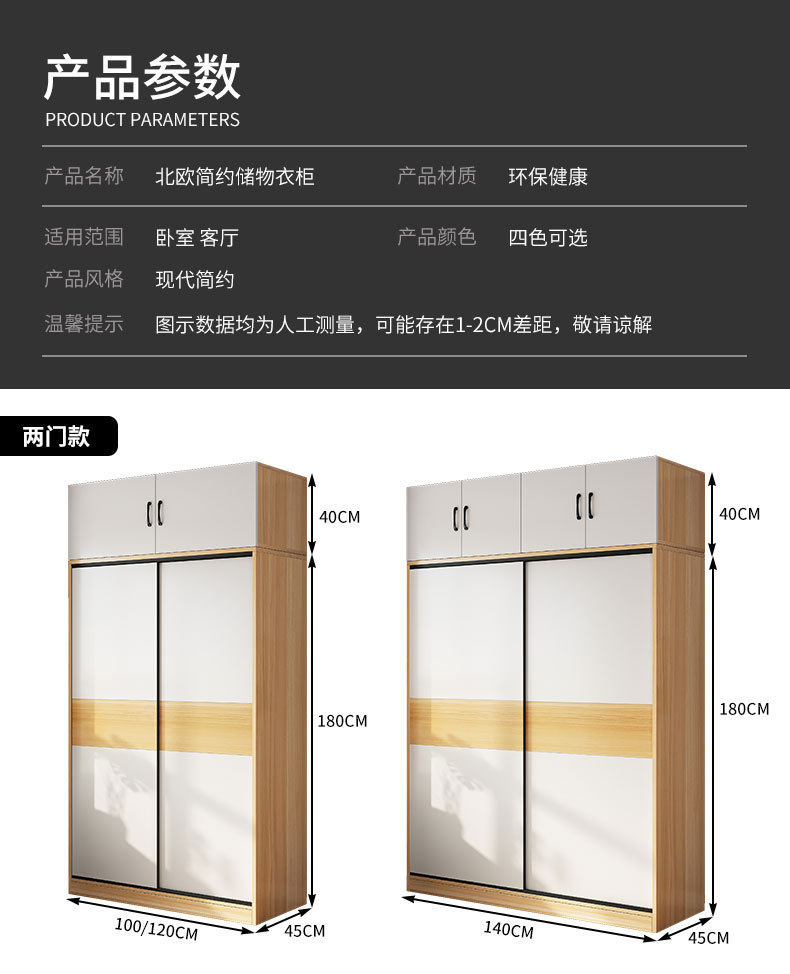 옷장 가정용 침실 작은 아파트 홈스테이 렌탈 룸 캐비닛 경제적 인 나무 어린이 매달린 옷장 슬라이딩 도어