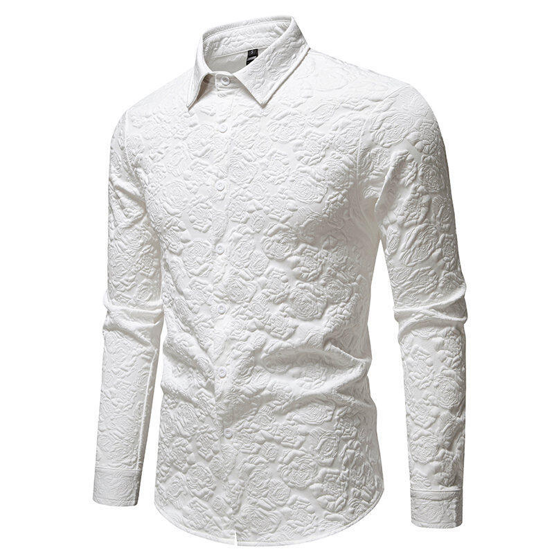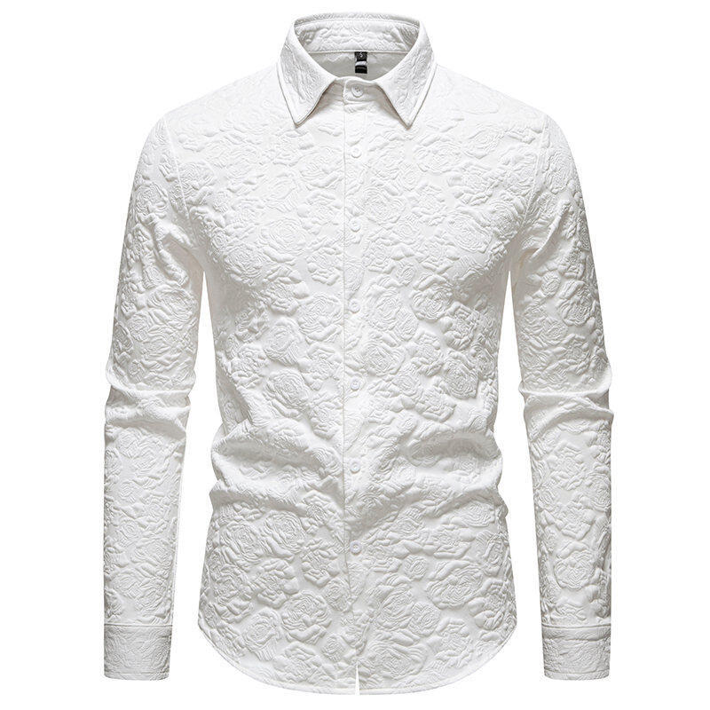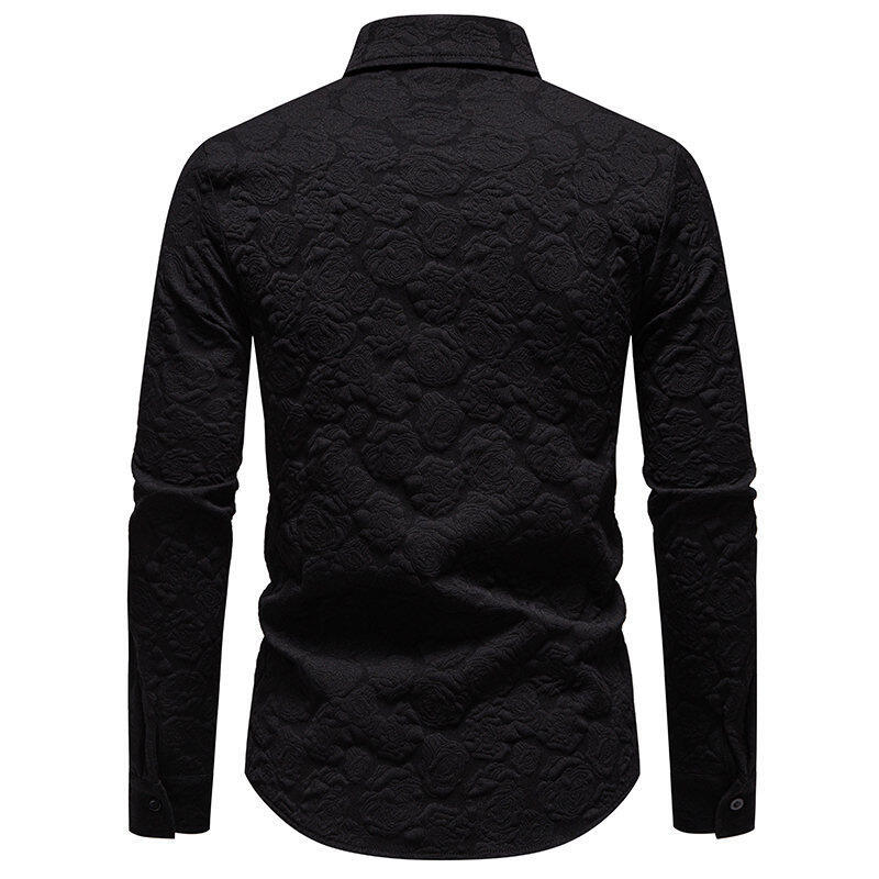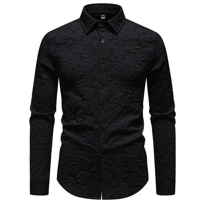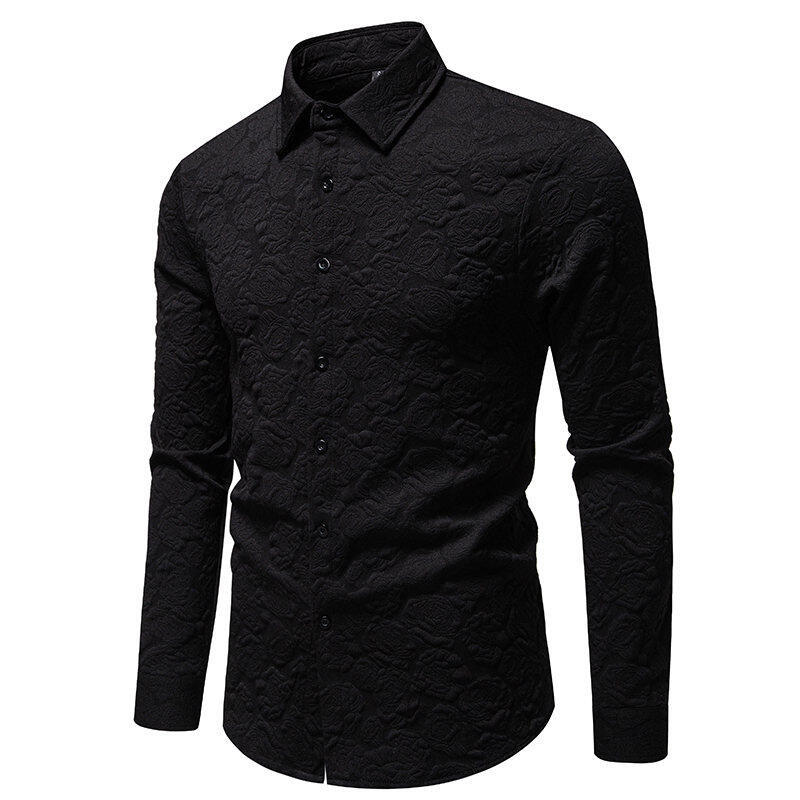 AliExpress 국경 간 대외 무역 패션 남성 양각 긴 소매 셔츠 남성 유럽과 미국의 슬림 핏 솔리드 컬러 플러스 사이즈 남성 셔츠