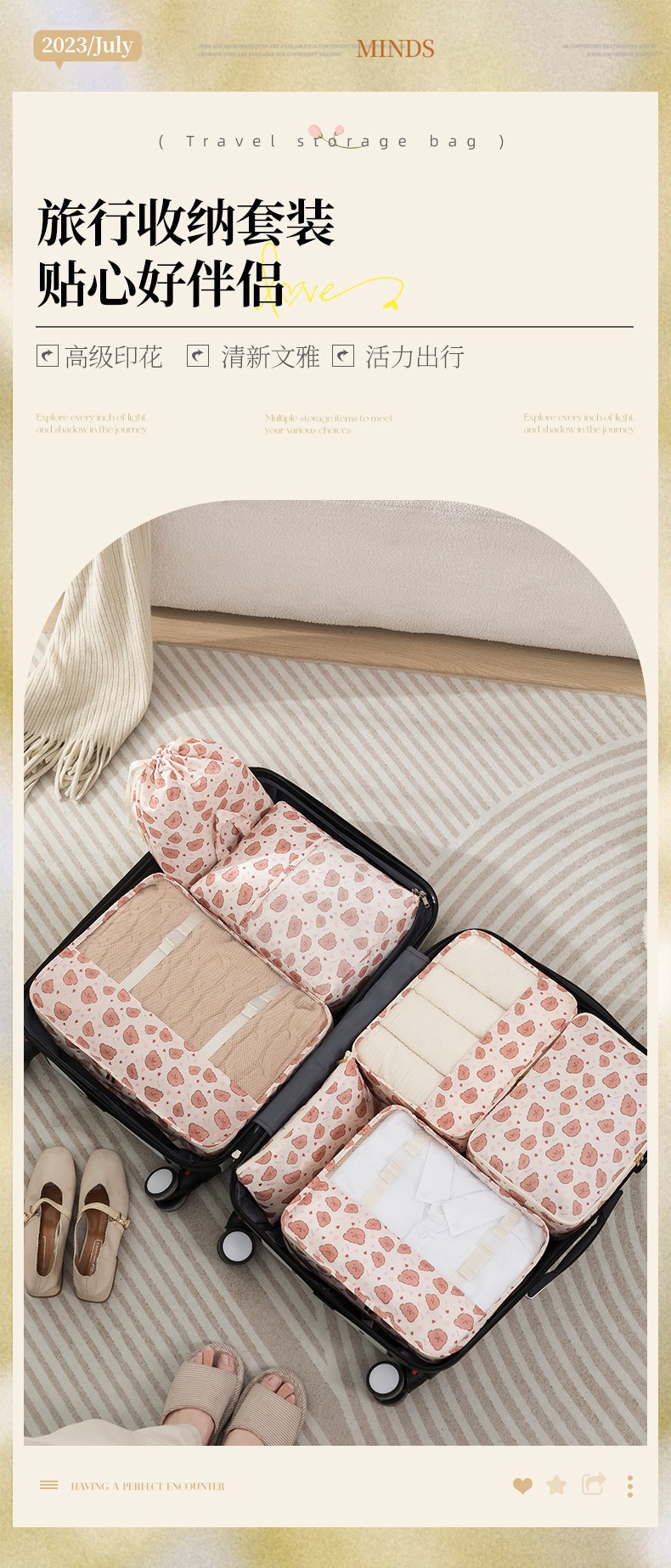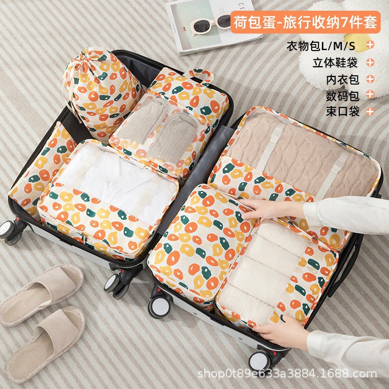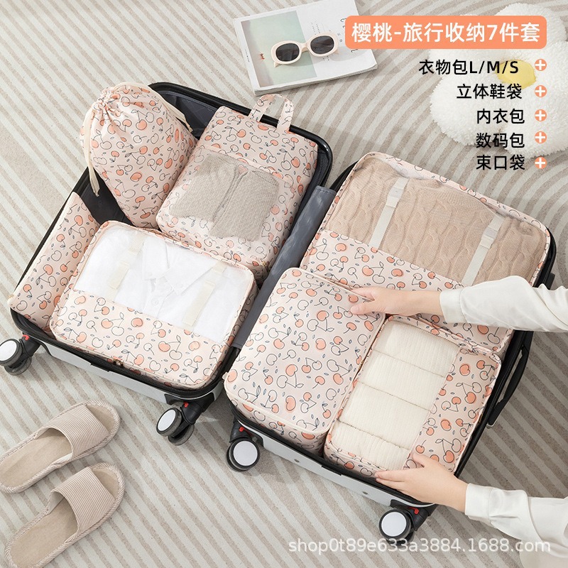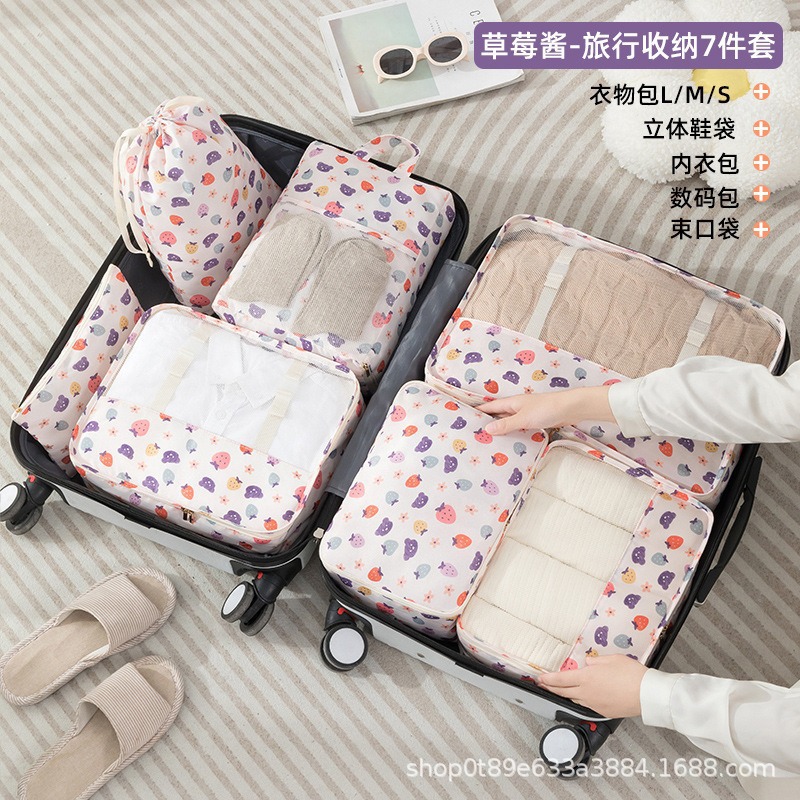 새로운 만화 인쇄 여행 보관 가방 세트 7 피스 세트 여행 수하물 의류 정렬 가방스토어 가기