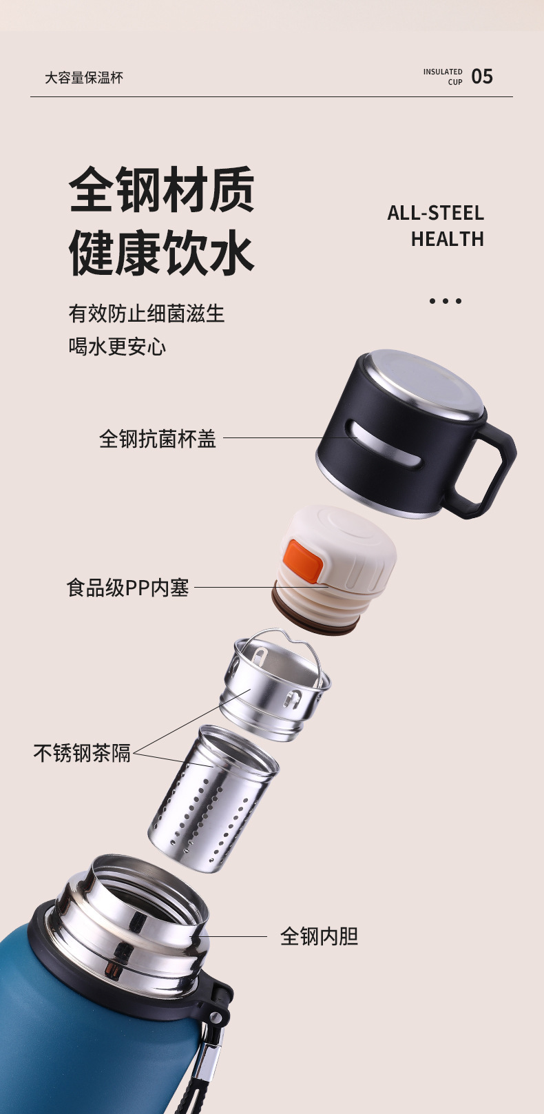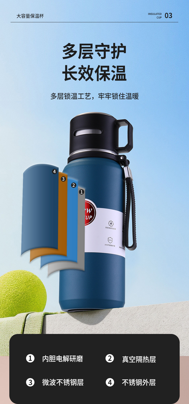 316 대용량 스테인레스 스틸 진공 모든 강철 단열 냄비 야외 스포츠 등산 휴대용 핸들 냄비 남자 컵