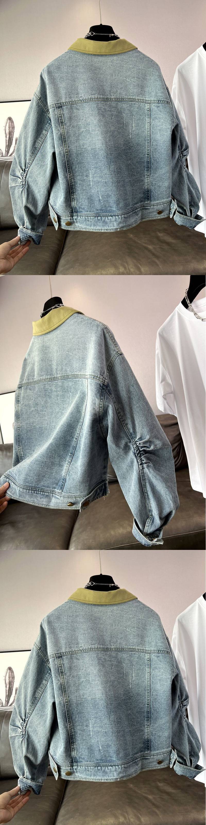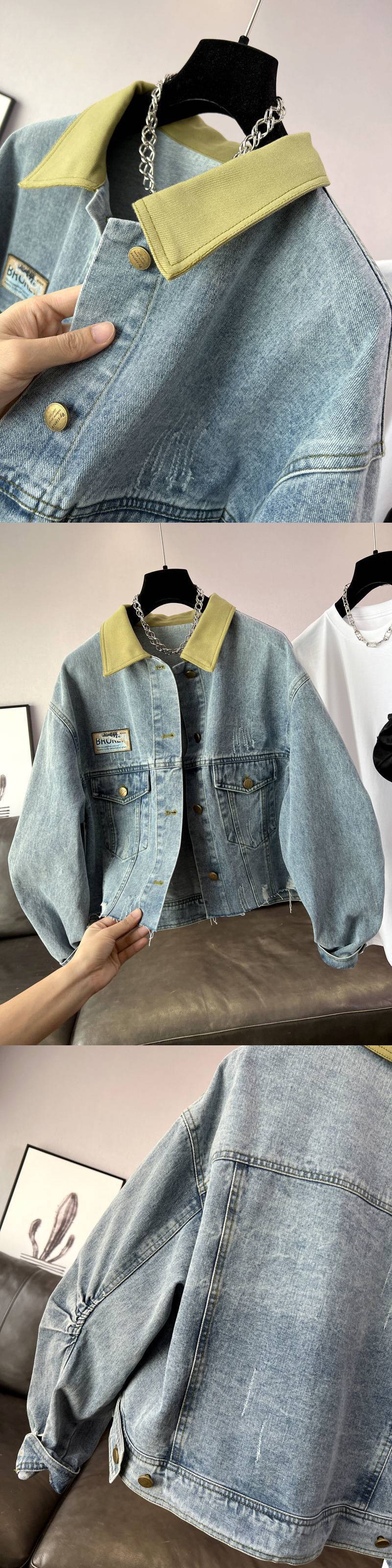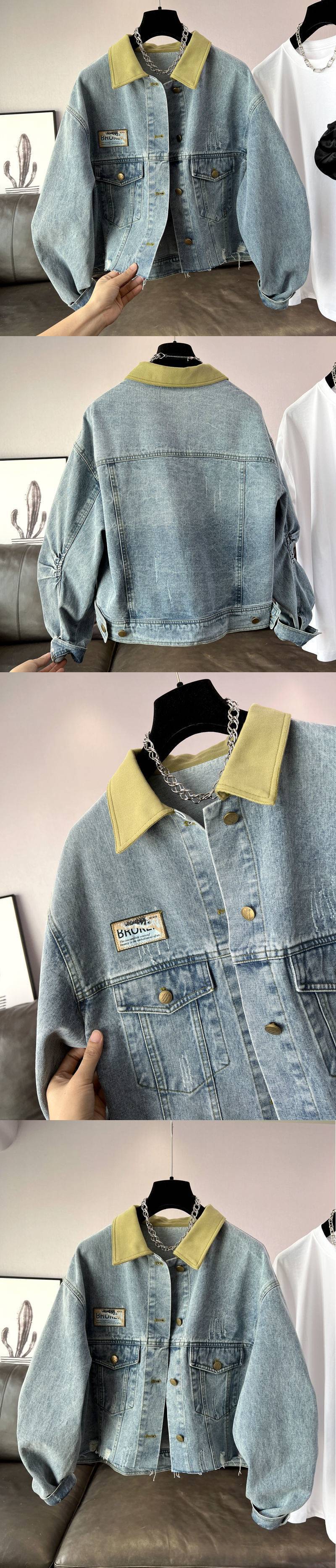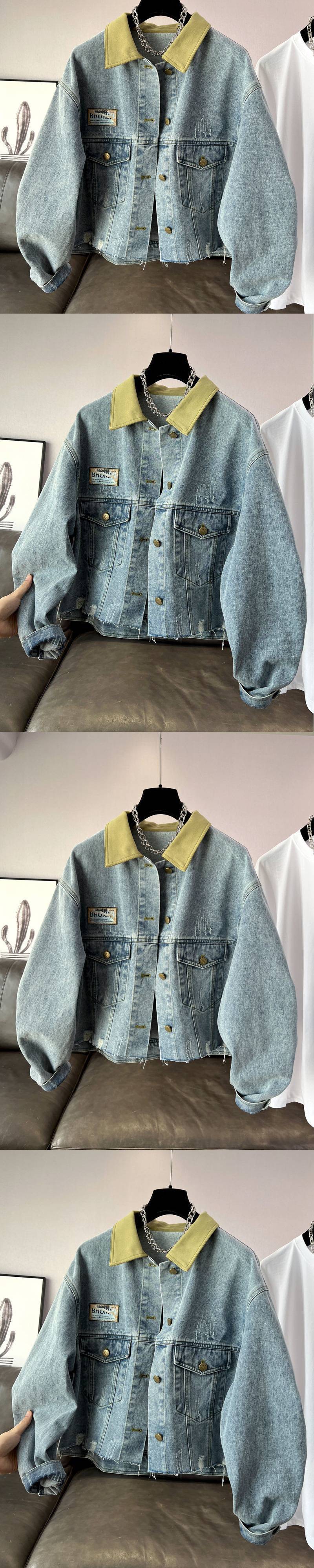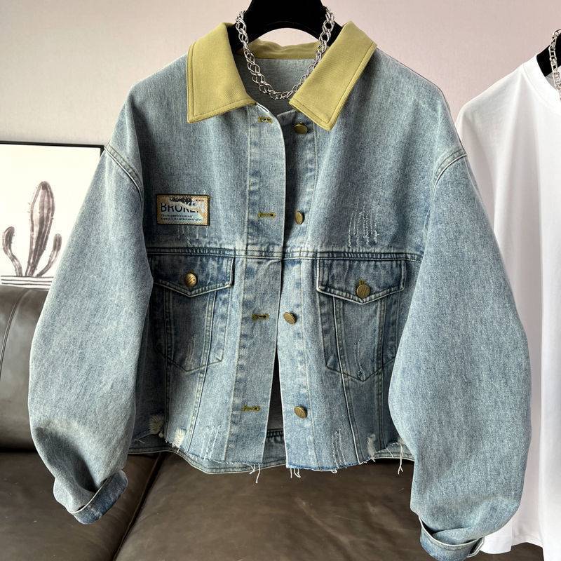 2025 새로운 틈새 캐주얼 루즈 콘트라스트 랩 빈티지 데님 재킷 여성 봄과 봄 짧은 재킷
