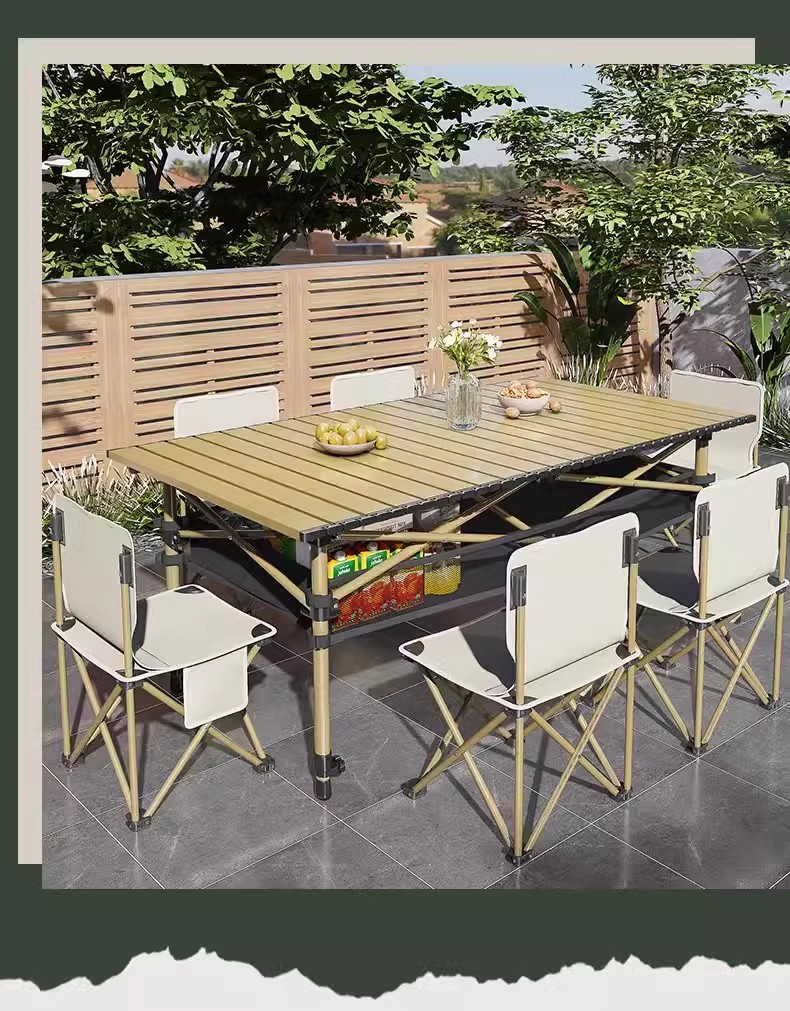 모든 지형 야외 리프팅 테이블 캠핑 피크닉 마케팅 네 다리 무료 리프팅 접이식 계란 롤 테이블과 의자 세트스토어 가기