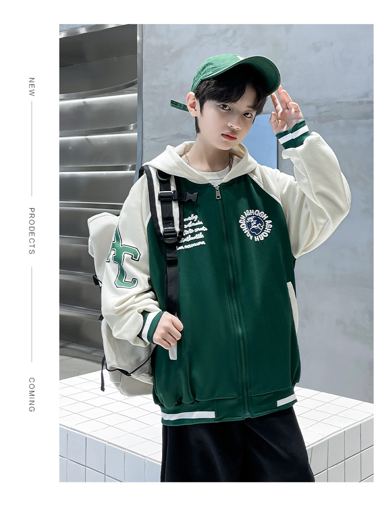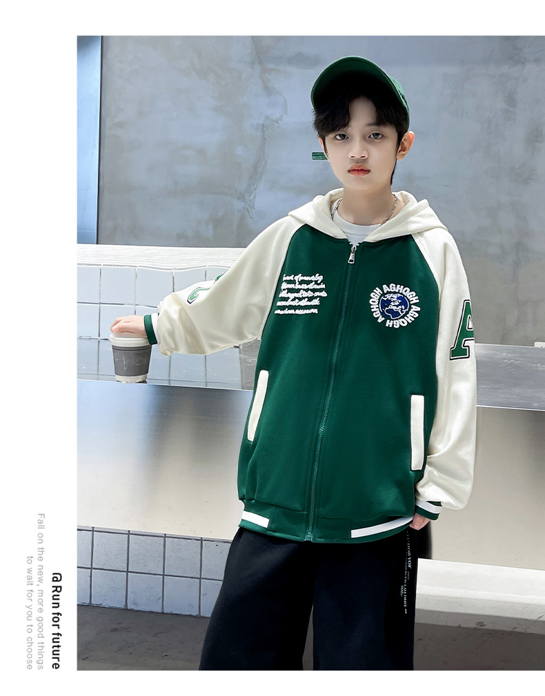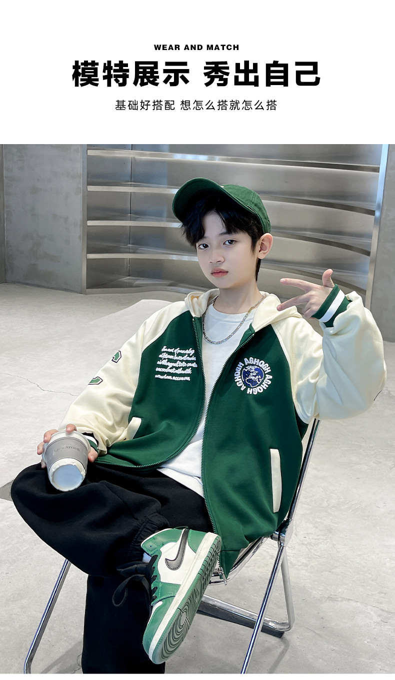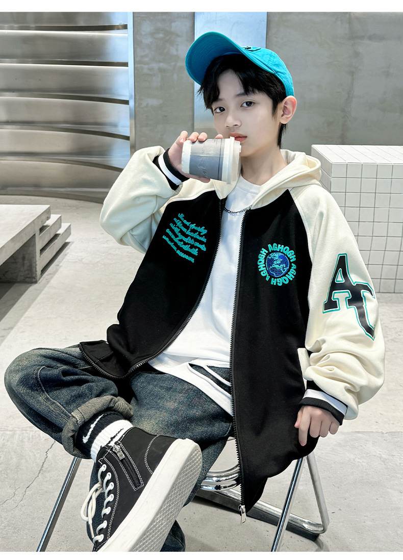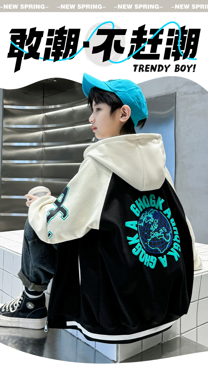 유행하는 2025 봄 스포츠 코트 올 매치 후디 소년 봄 새 코트 후드 컬러스토어 가기