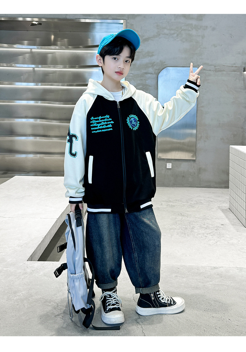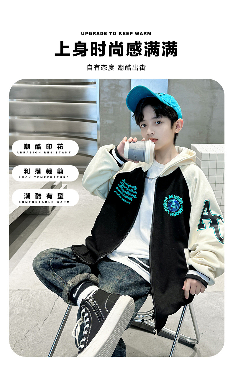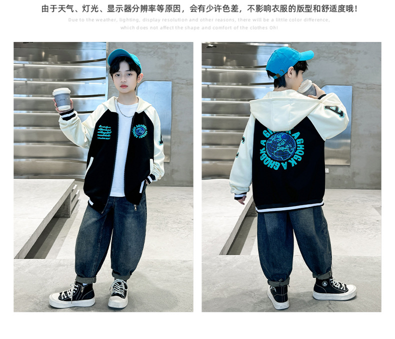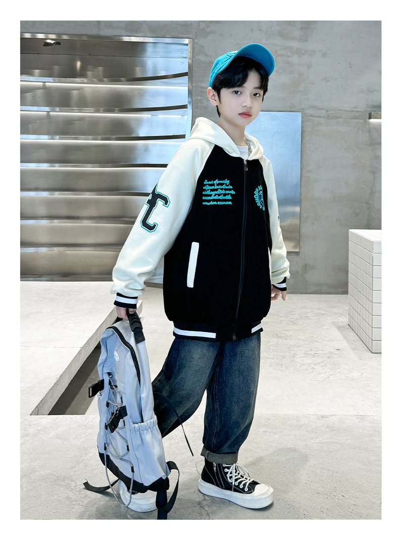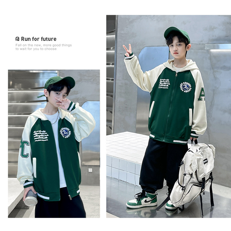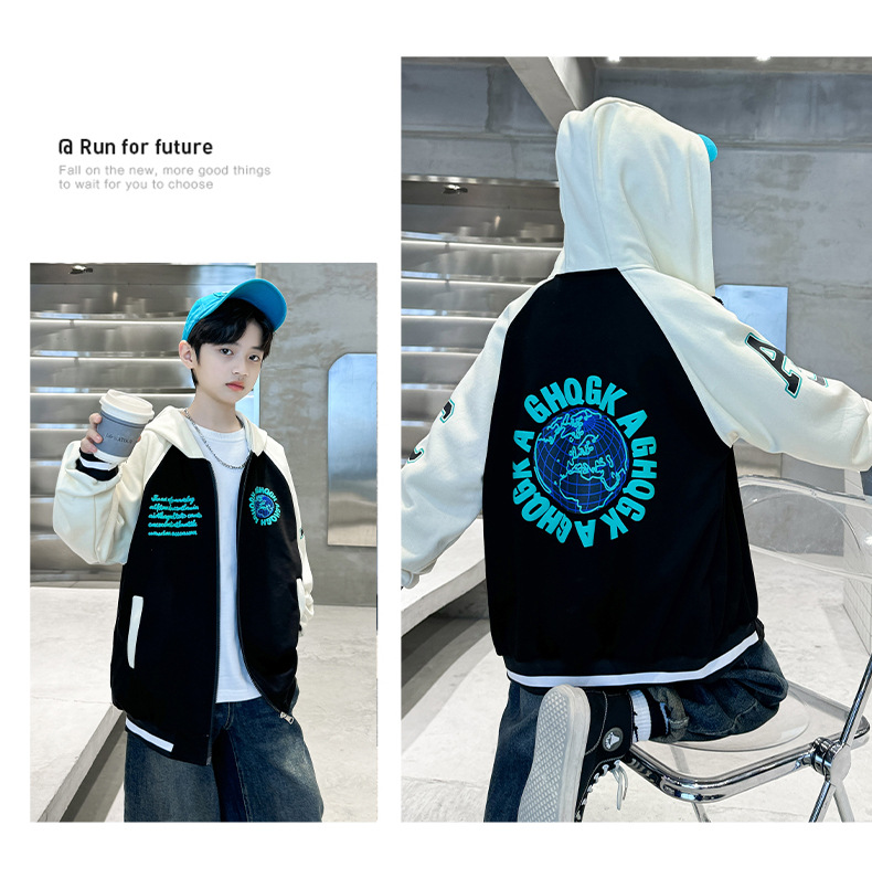 유행하는 2025 봄 스포츠 코트 올 매치 후디 소년 봄 새 코트 후드 컬러스토어 가기