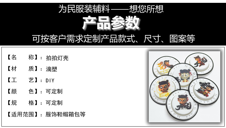 엄격한 상품 의류 액세서리 국가 조수 다크 블랙 UV 컬러 인쇄 드롭 플라스틱 부드러운 접착제 플래시 램프 쉘 성격 표지판