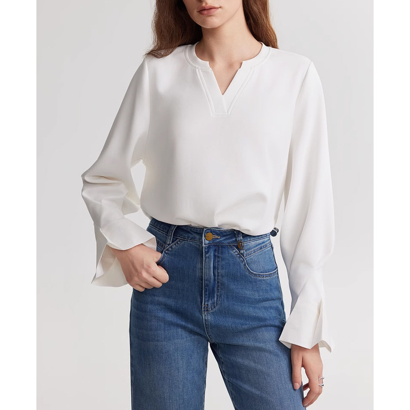 꽃잎 소매 디자인 감각 긴 소매 스웨터 여성의 2025 봄 새로운 시대 감소 기질 탑스토어 가기