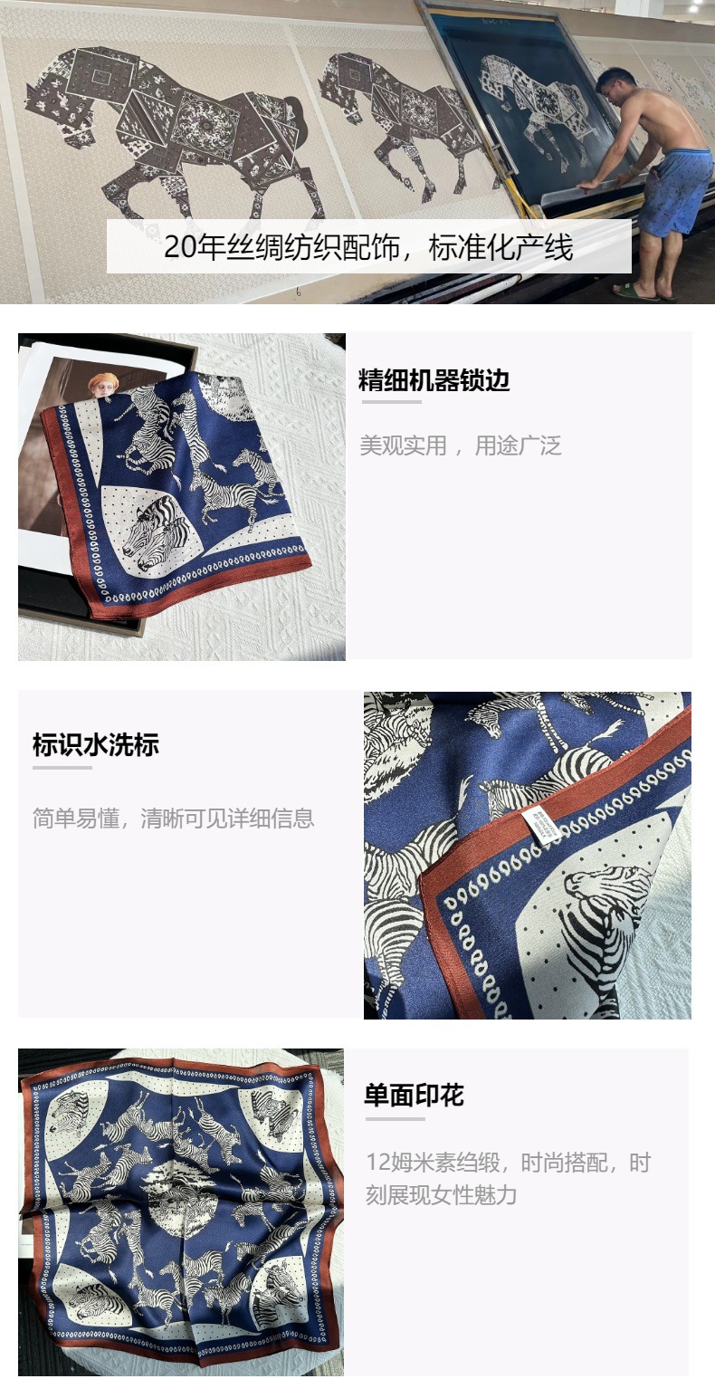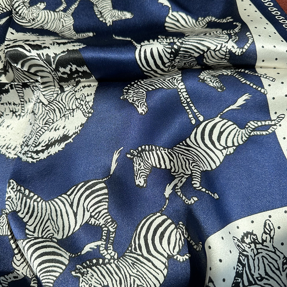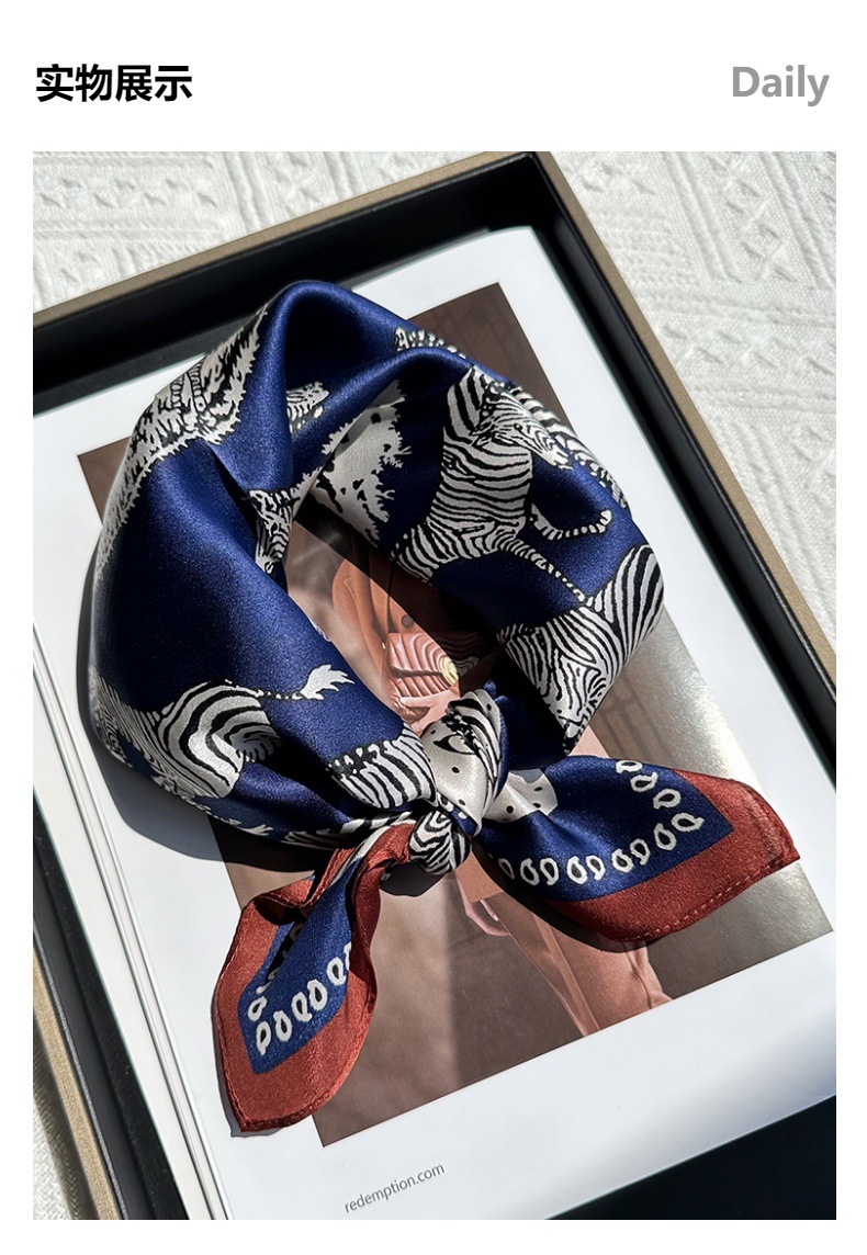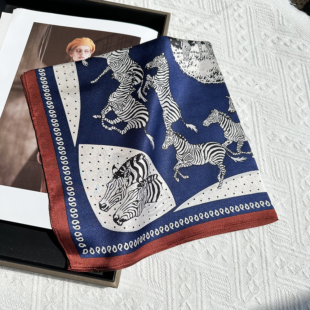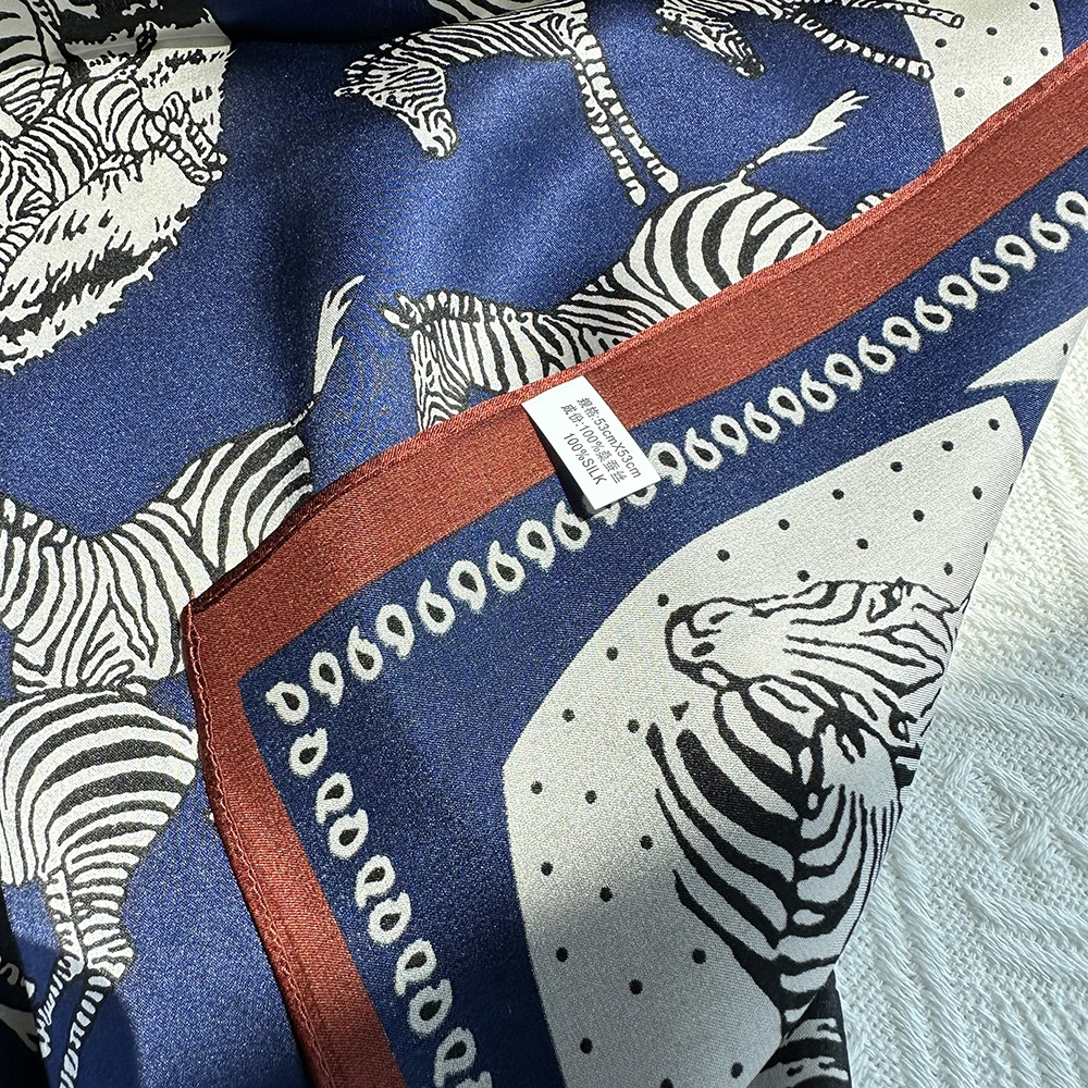 네이비 라인 얼룩말 실크 스카프 여성용 봄 하이 엔드 센스 인쇄 100 뽕나무 실크 얇은 53cm 스카프스토어 가기