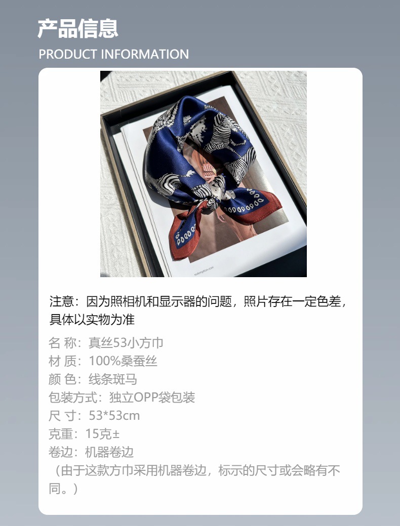 • ZSFJ143 라인 얼룩말 (실크 53cm 스몰 스퀘어 스카프, 멀버리 실크 100%)