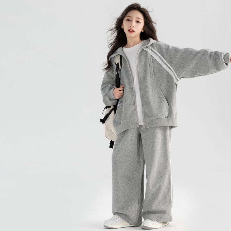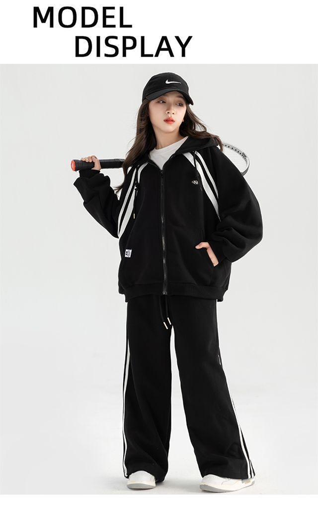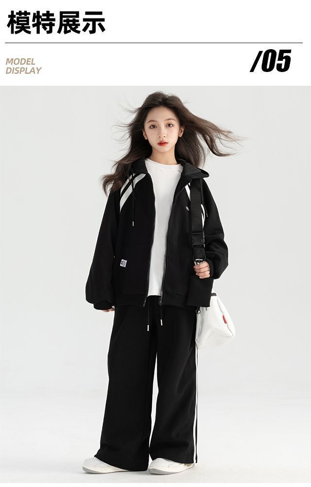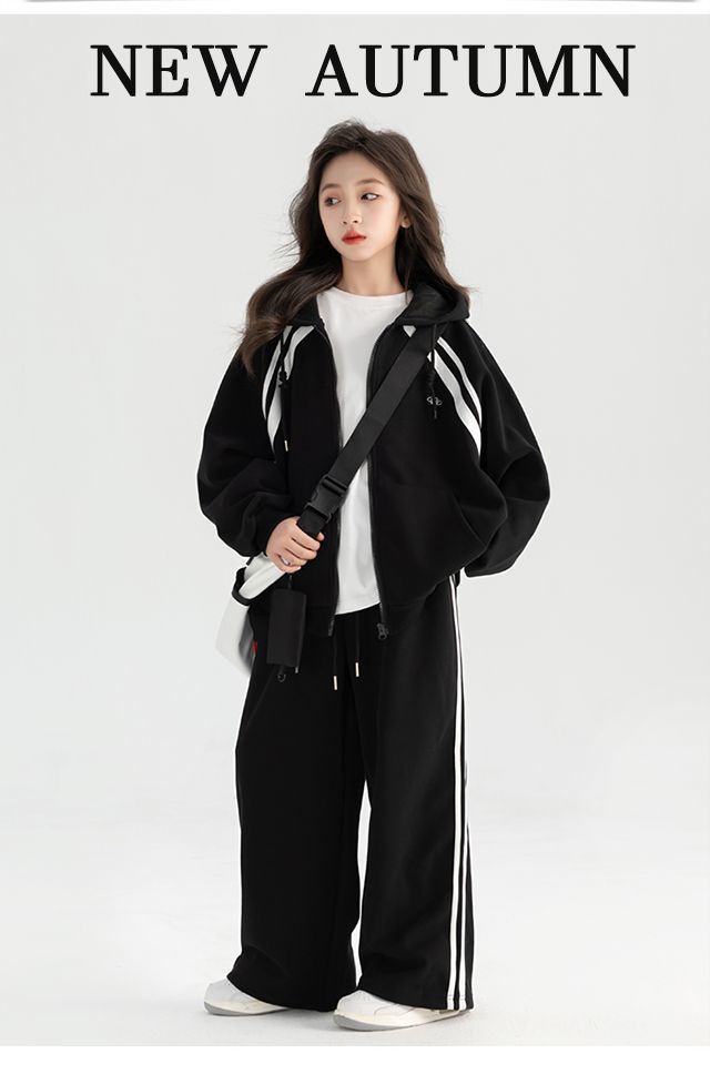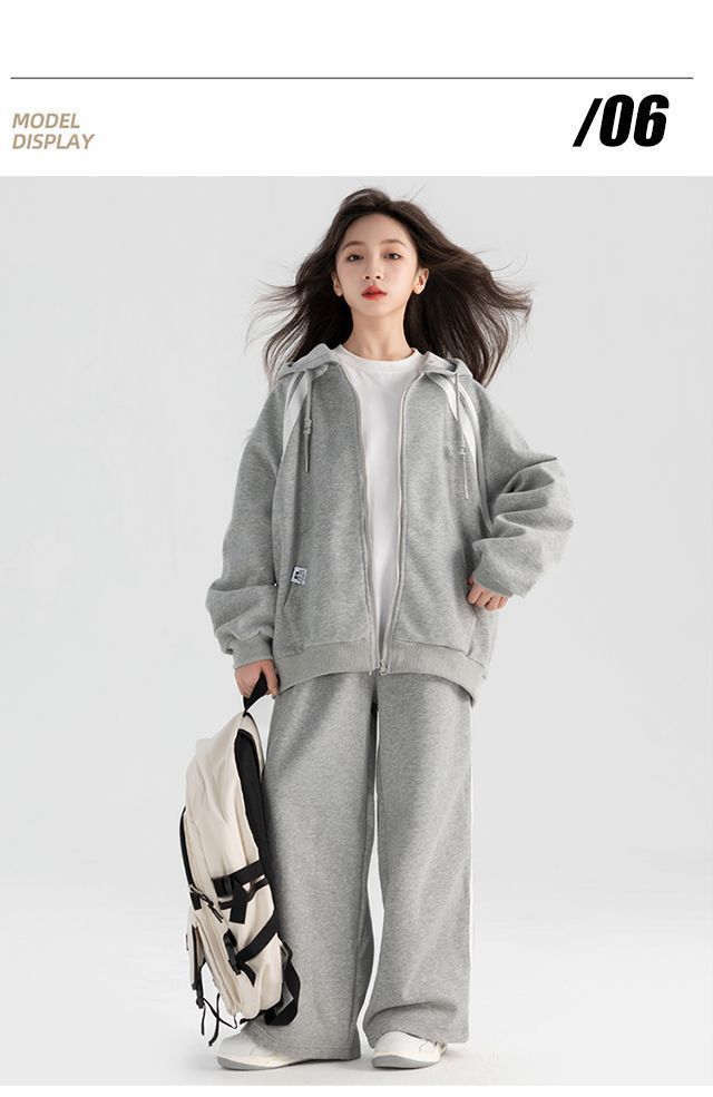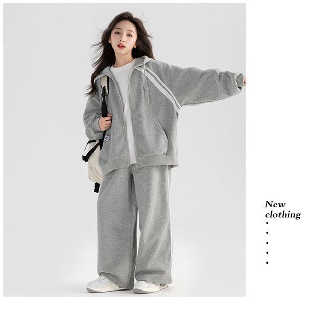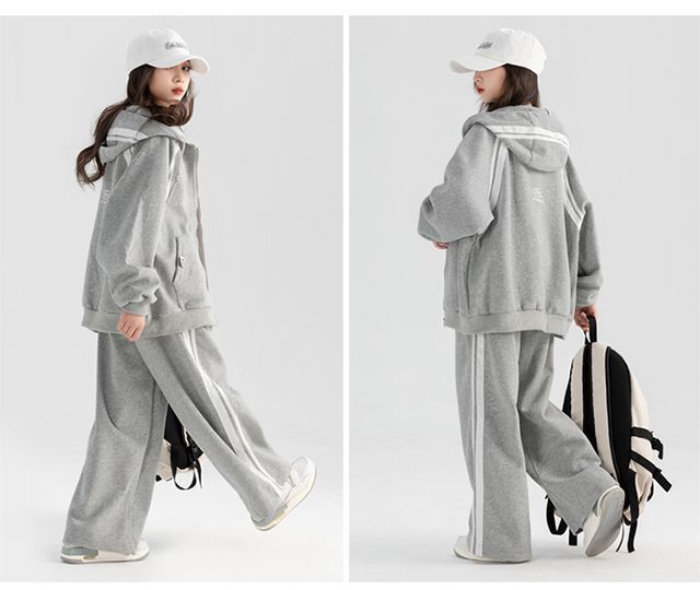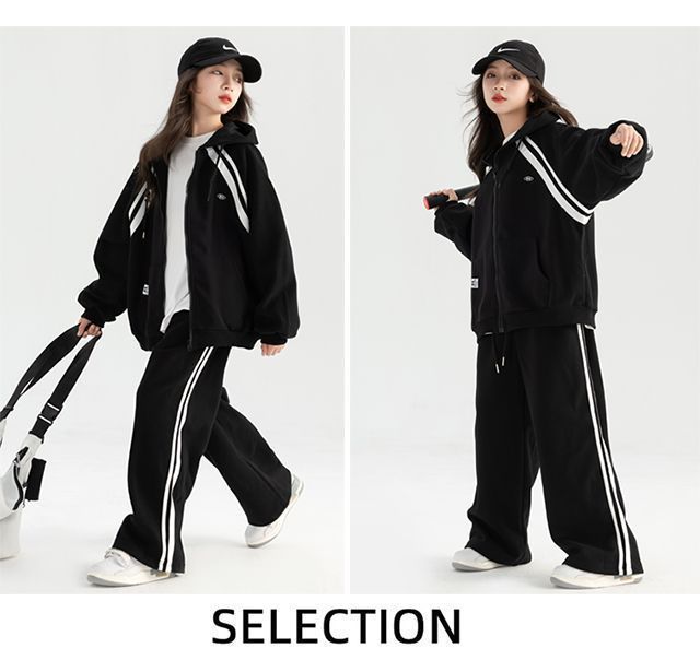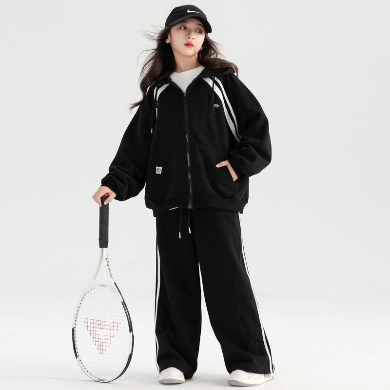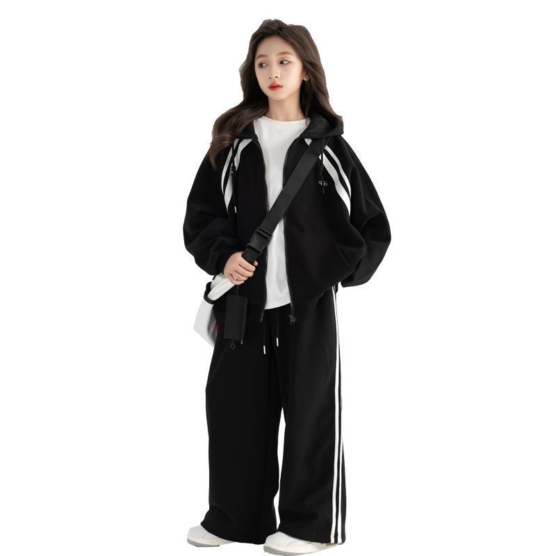 소녀 2025 새로운 스타일 가을 원피스 봄과 가을 캐주얼 세트 스포츠 후드 자켓 큰 소년과 소녀를위한 투피스 세트