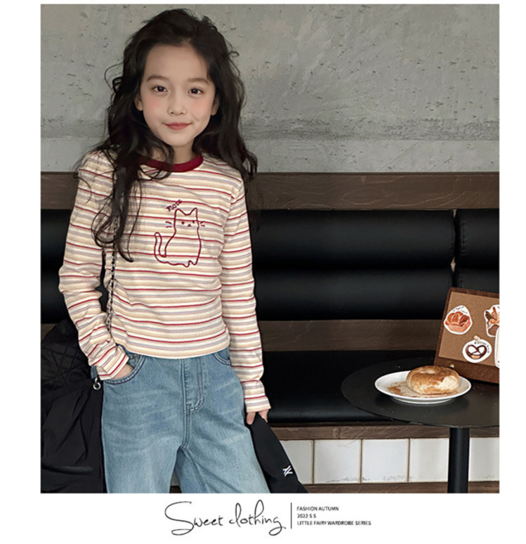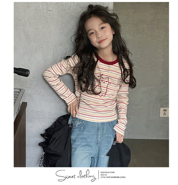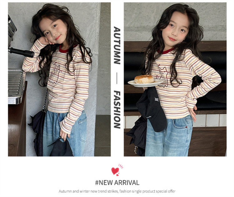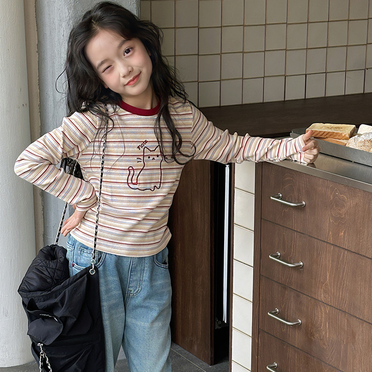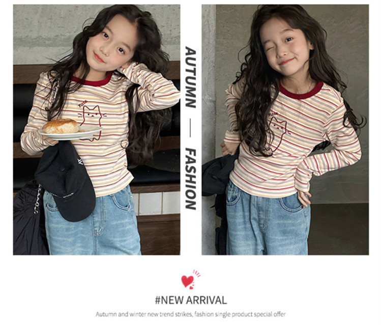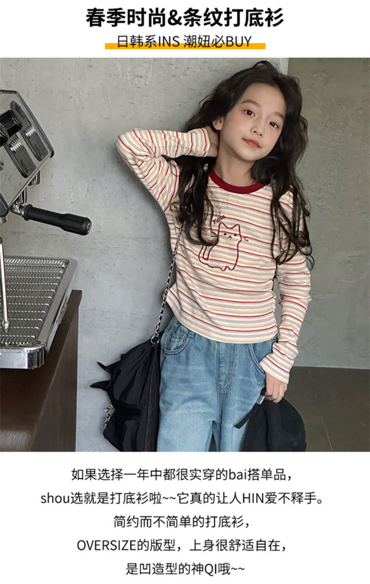 소녀 긴팔 티셔츠 봄과 가을 2025 새로운 유행 어린이 캐주얼 줄무늬 크루 넥 스프링베이스 셔츠스토어 가기