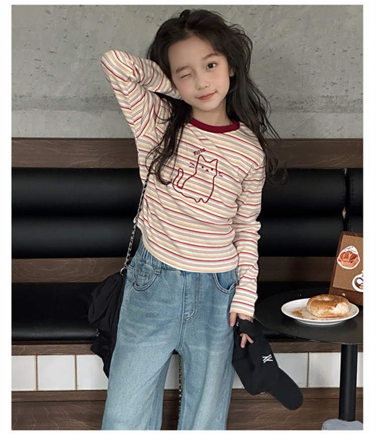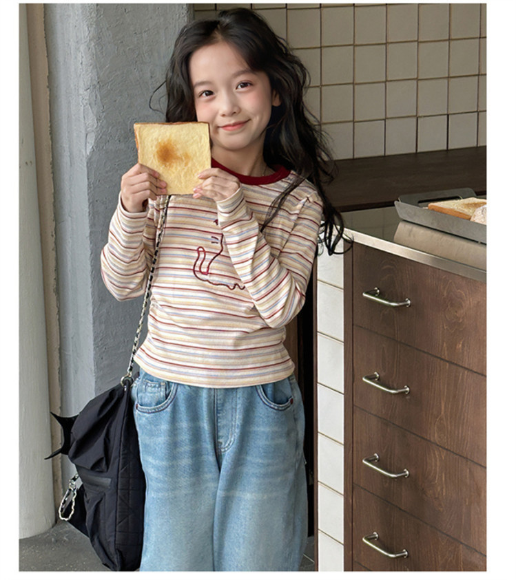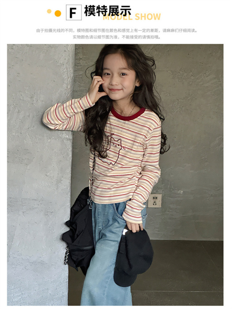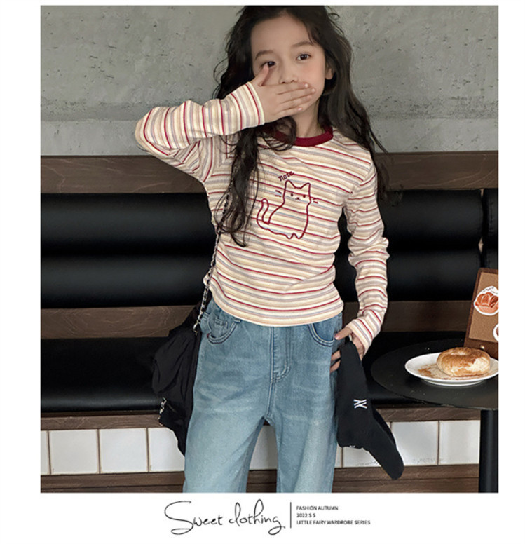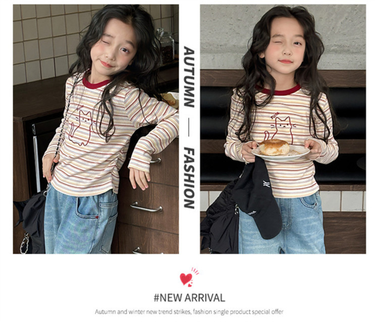 소녀 긴팔 티셔츠 봄과 가을 2025 새로운 유행 어린이 캐주얼 줄무늬 크루 넥 스프링베이스 셔츠스토어 가기