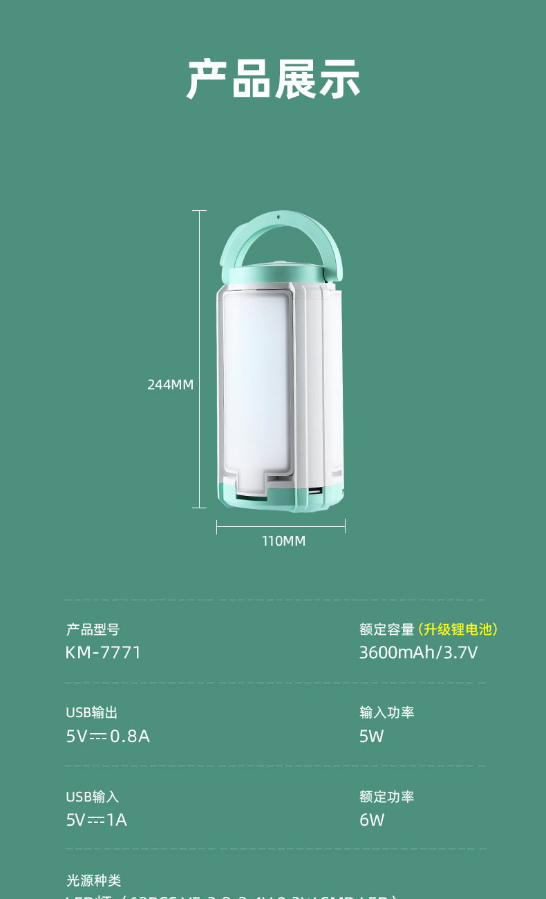 강밍 캠핑 야외 램프 조명 랜턴 캠핑 충전 야외 텐트 비상 램프 대외 무역 국경 KM-7771
