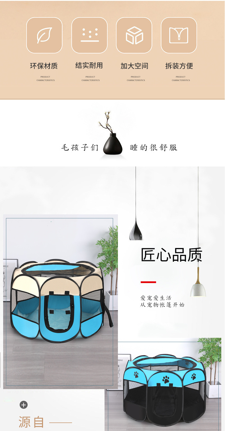 접이식 팔각형 애완 동물 울타리 옥스포드 천 잡기 방지 애완 동물 텐트 개 케이지 개 고양이 젖은 강아지 쿠션 쿠션스토어 가기