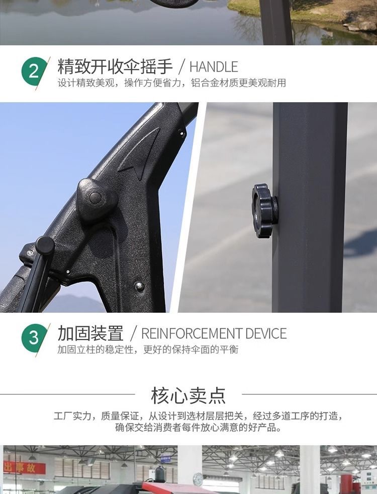 • 더블 탑 오프화이트 바나나 우산에는 물탱크 60kg 개가 포함되어 있습니다.