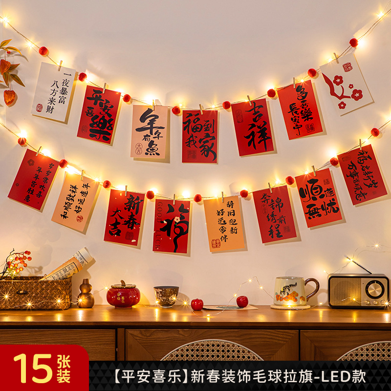 • 【행운과 부를 가져다주는】 폼폼이 깃발 (조명 포함)