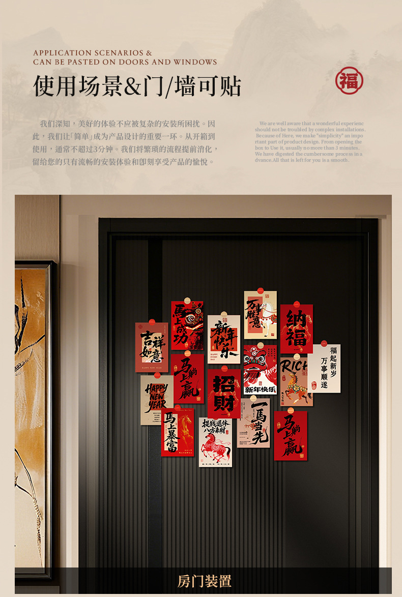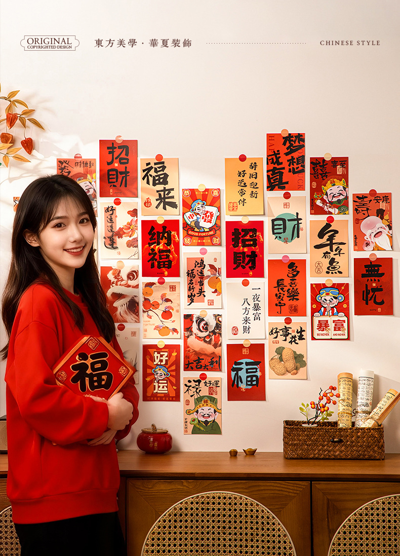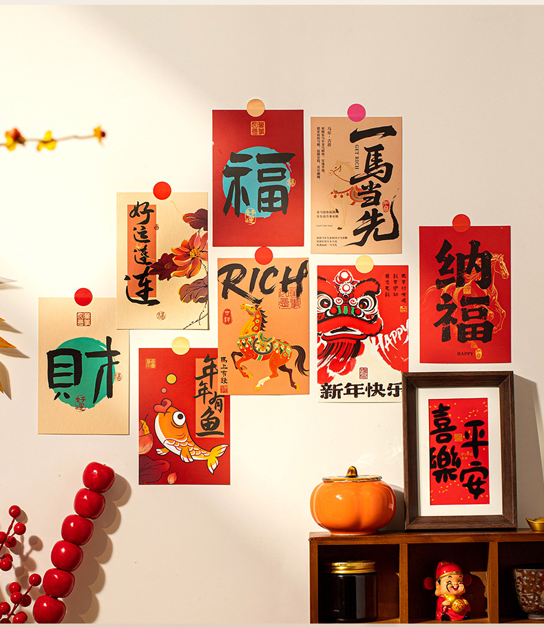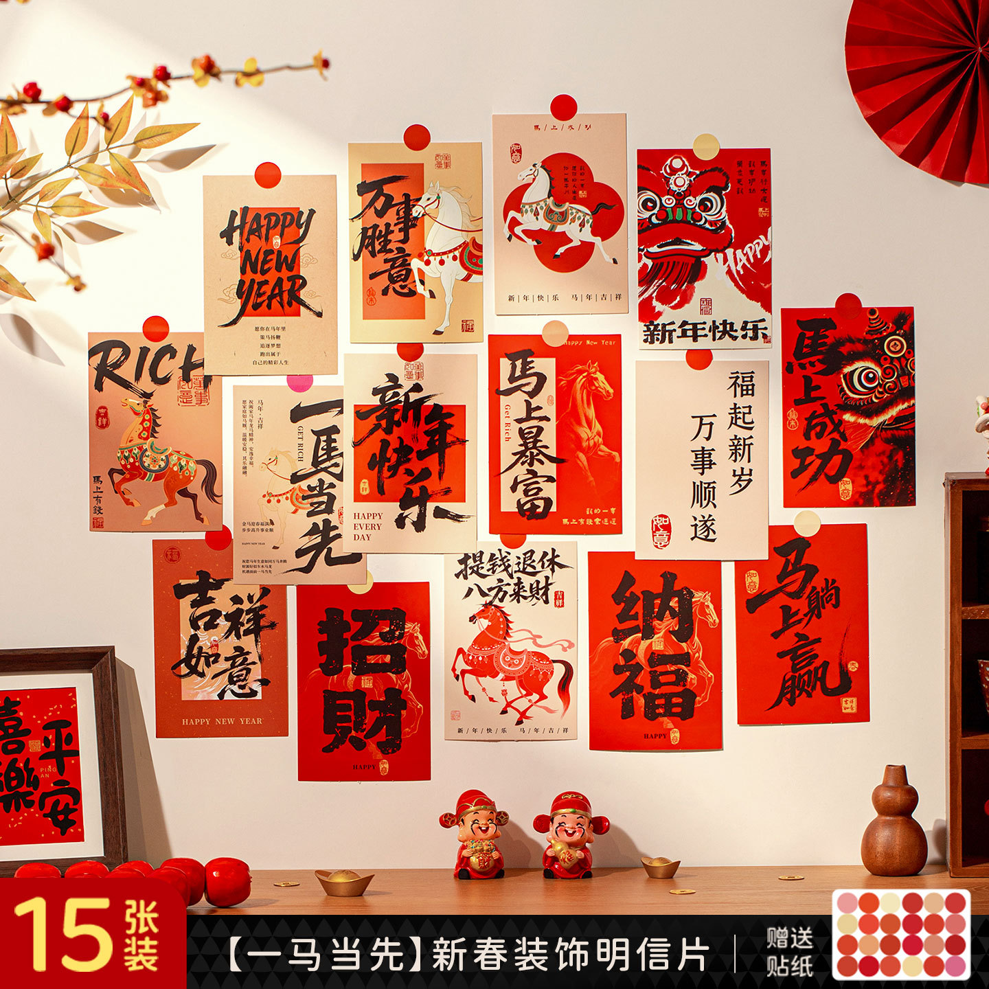 2026년 신년 스티커 엽서 말의 해 설날 거실 방 배경 벽 분위기 장식 봄 축제 장식