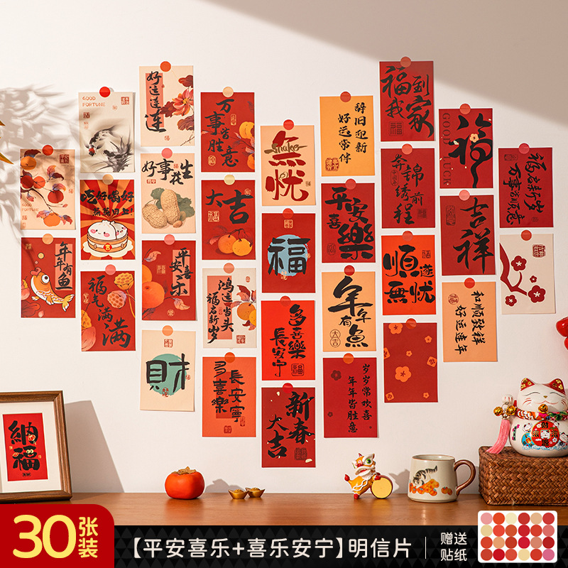 • [평화와 기쁨 + 행운과 번영] 카드 30장(스티커 포함)