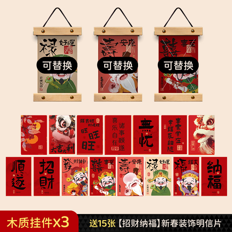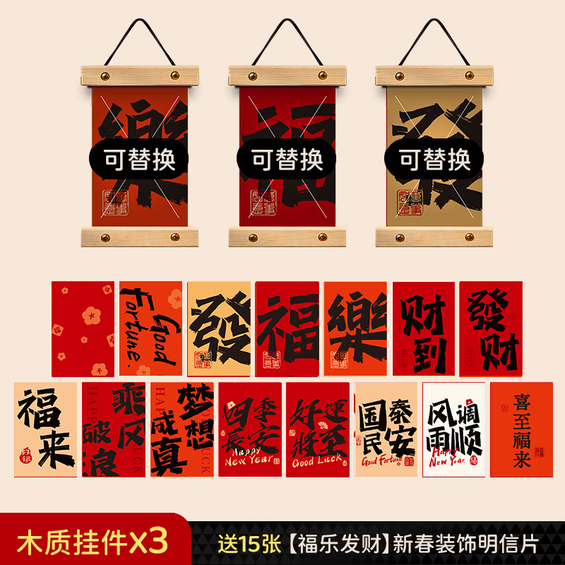 • 【복과 재물이 번창하길】 나무 장식 3세트 (카드 15장 선택 증정)