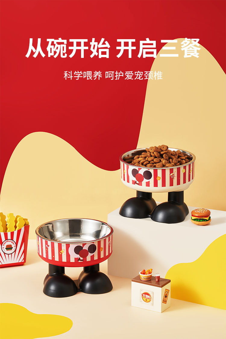 고양이 그릇 애완 동물 그릇 고양이 목 보호 높은 그릇 미끄럼 방지 노크 개 그릇 고양이 식품 애완 동물 그릇