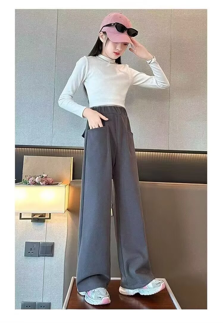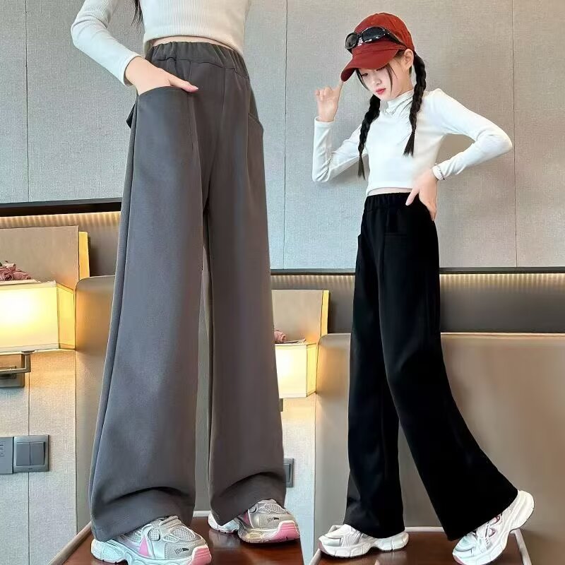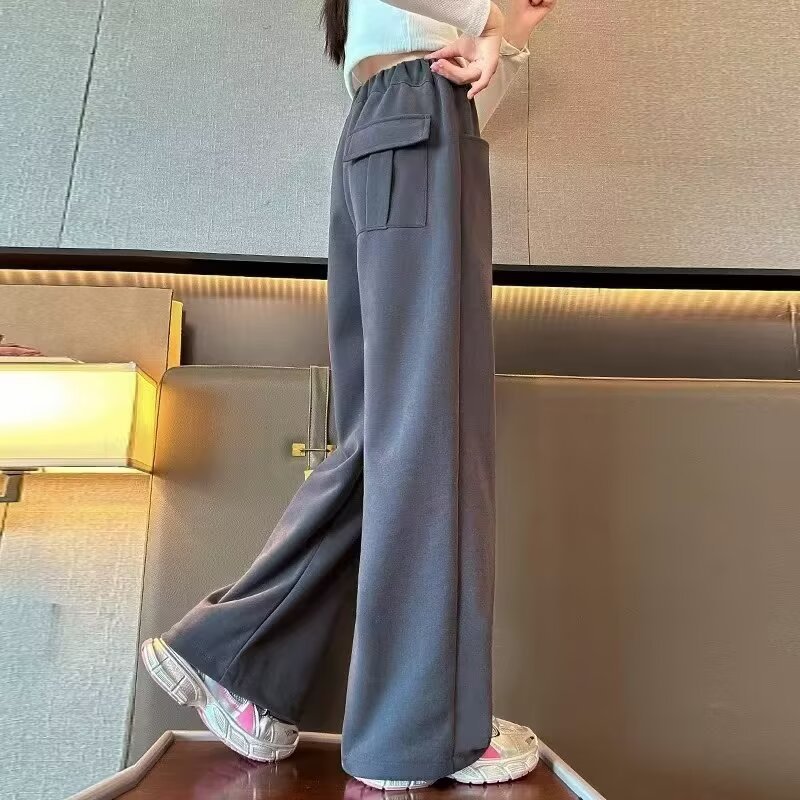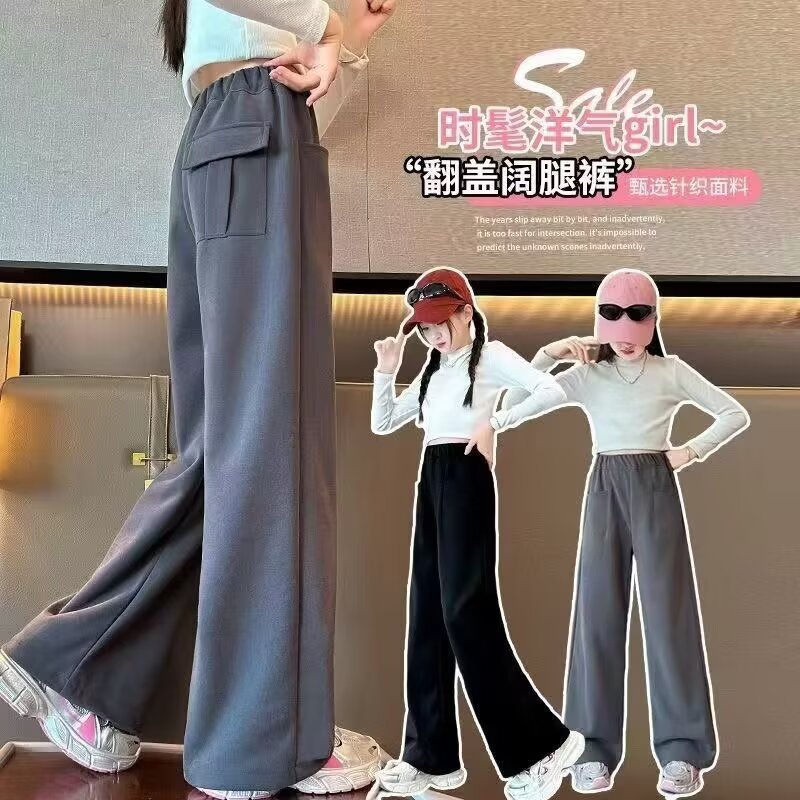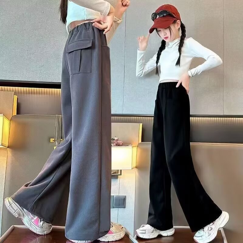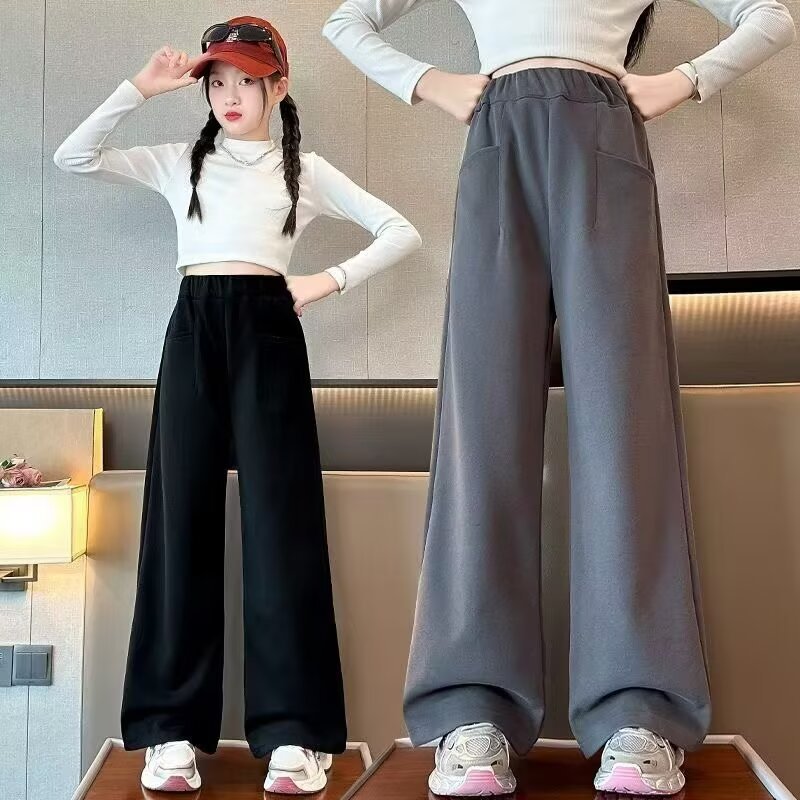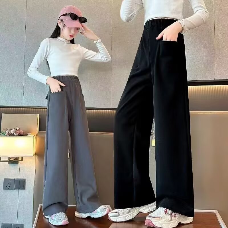 소녀 바지 봄과 가을 소녀 학생 새로운 스타일 중대형 어린이 느슨한 캐주얼 스포츠 바지 어린이 스트레이트 다리 와이드 다리 바지