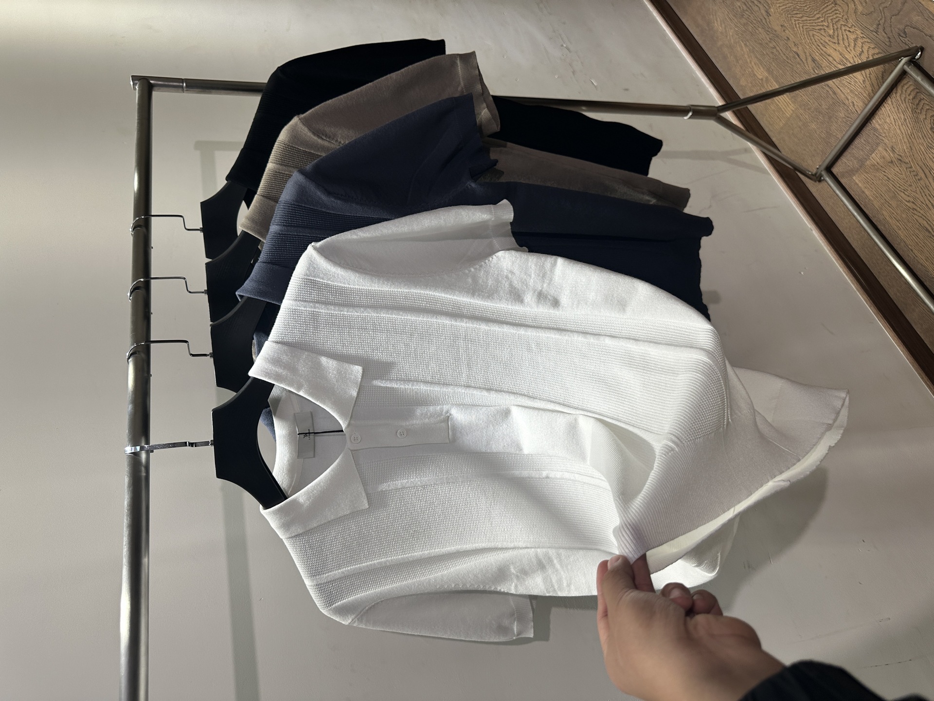 디자이너 니트 아이스 느낌 편안한 여름 새로운 유행 Lop 스트레치 반팔 폴로 셔츠 티셔츠 남성 비즈니스스토어 가기