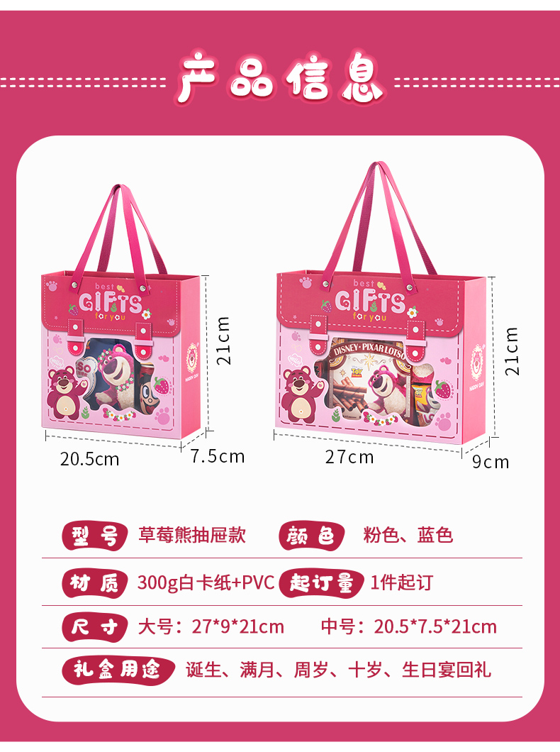 • 남녀공용-딸기곰-핑크(여아선물박스)-패키지B(중형)⭐⭐⭐