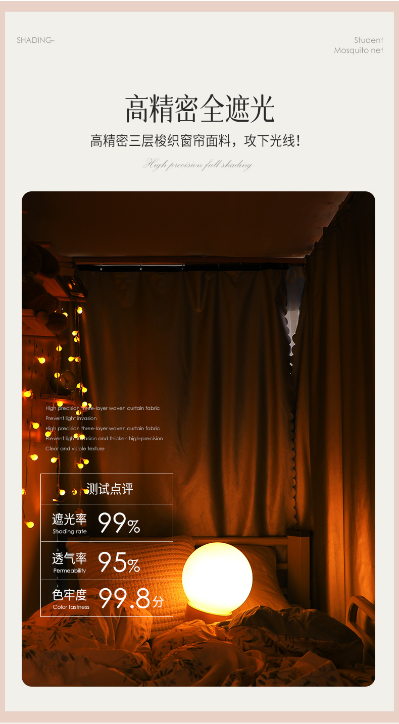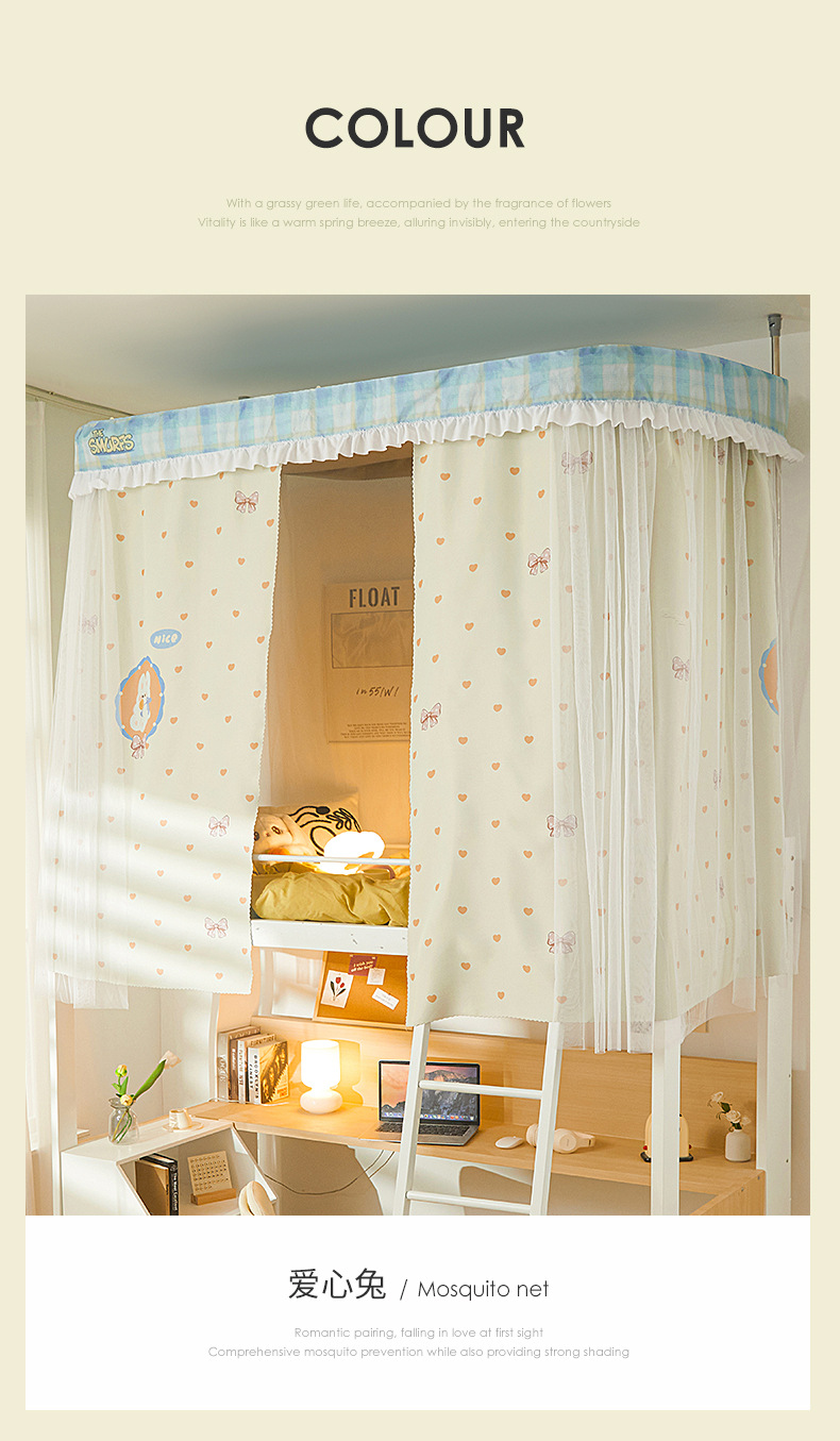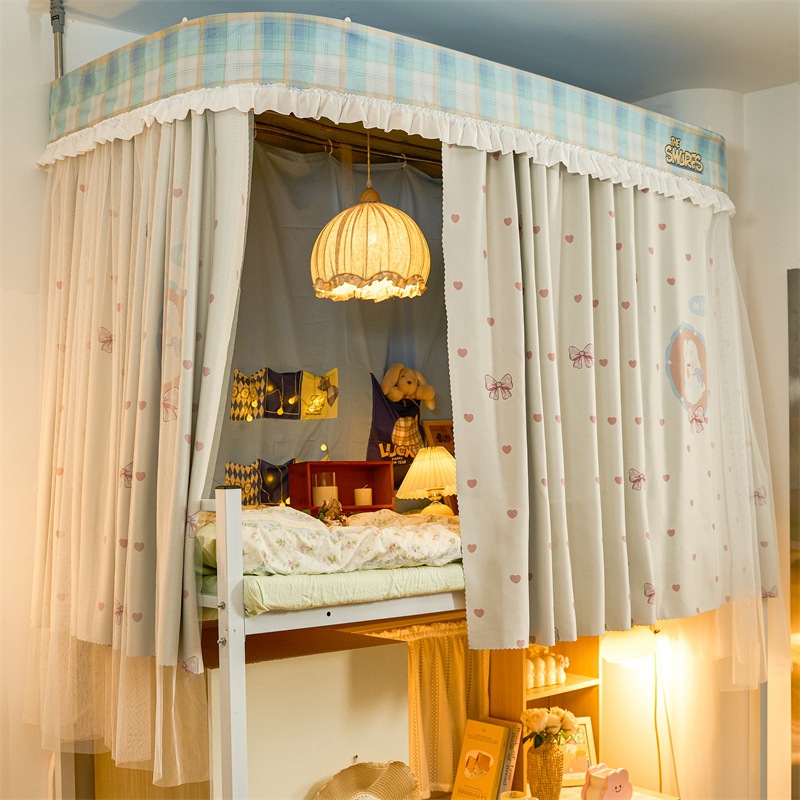학생 기숙사 모기장 강한 음영 상하 침대 커튼 침대 커튼 더블 레일 락터 목가적 인 기숙사 모기장
