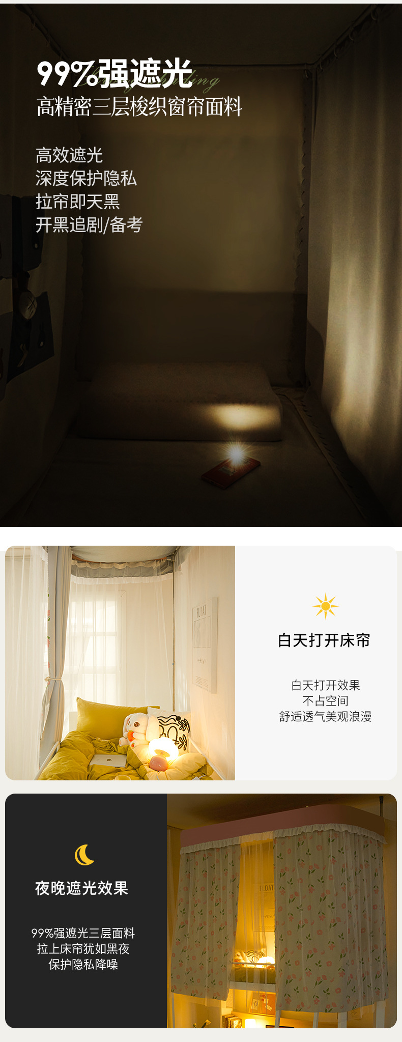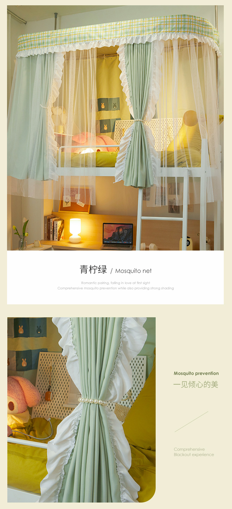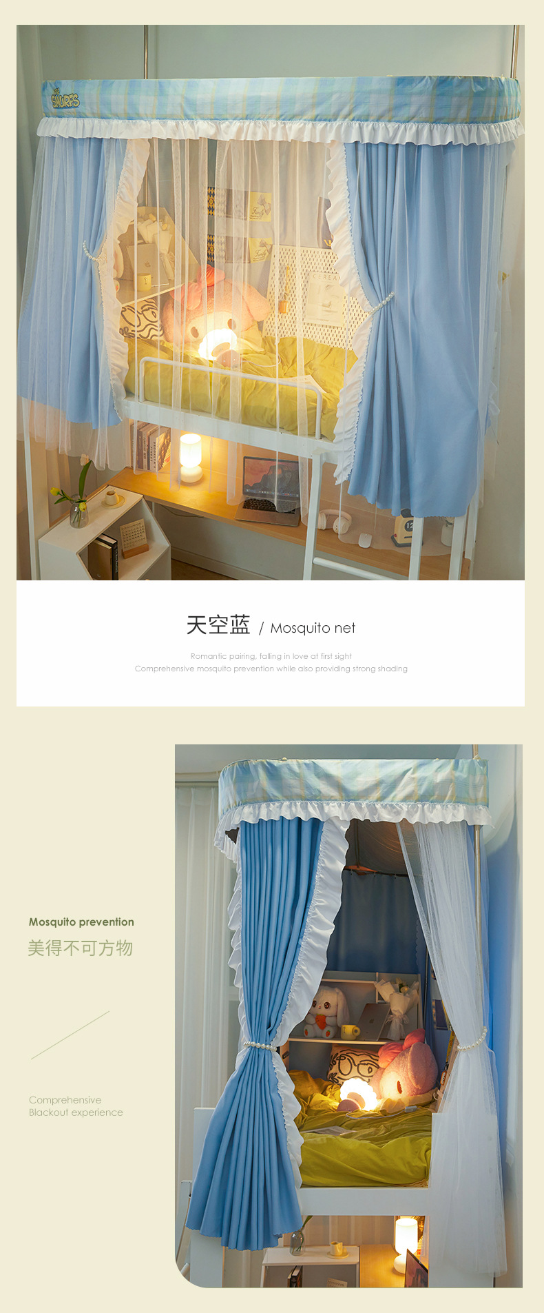 학생 기숙사 모기장 강한 음영 상하 침대 커튼 침대 커튼 더블 레일 락터 목가적 인 기숙사 모기장