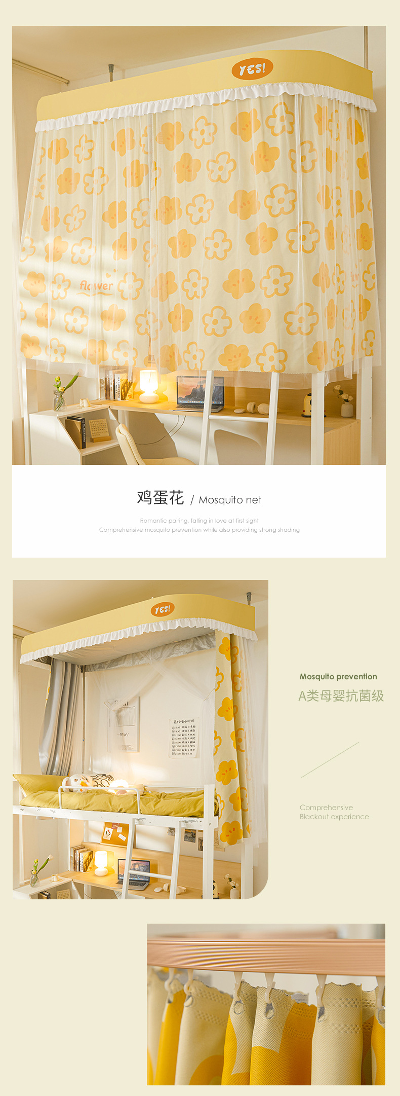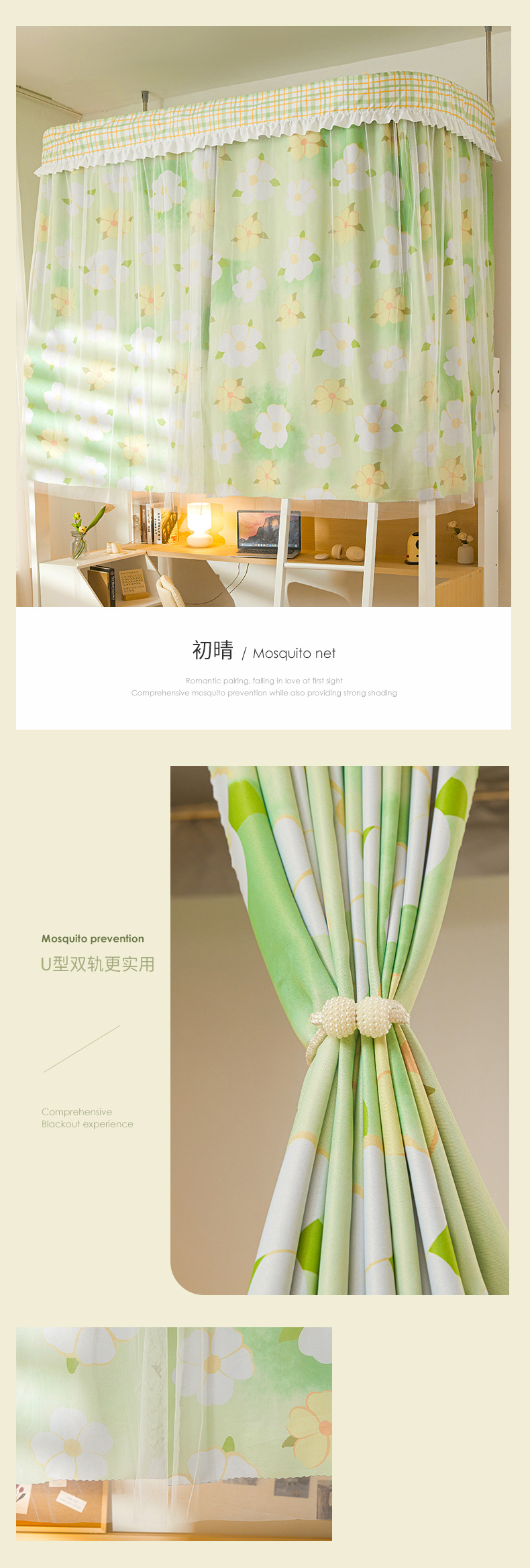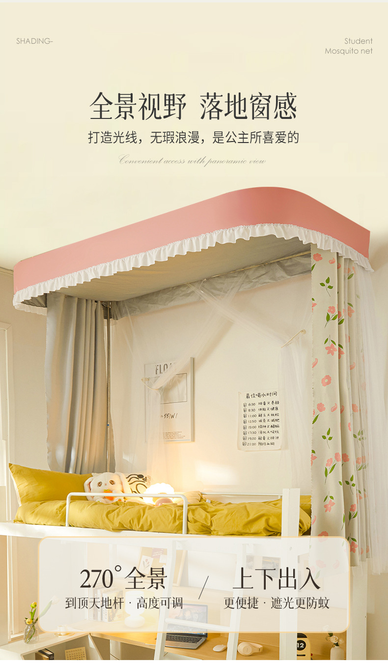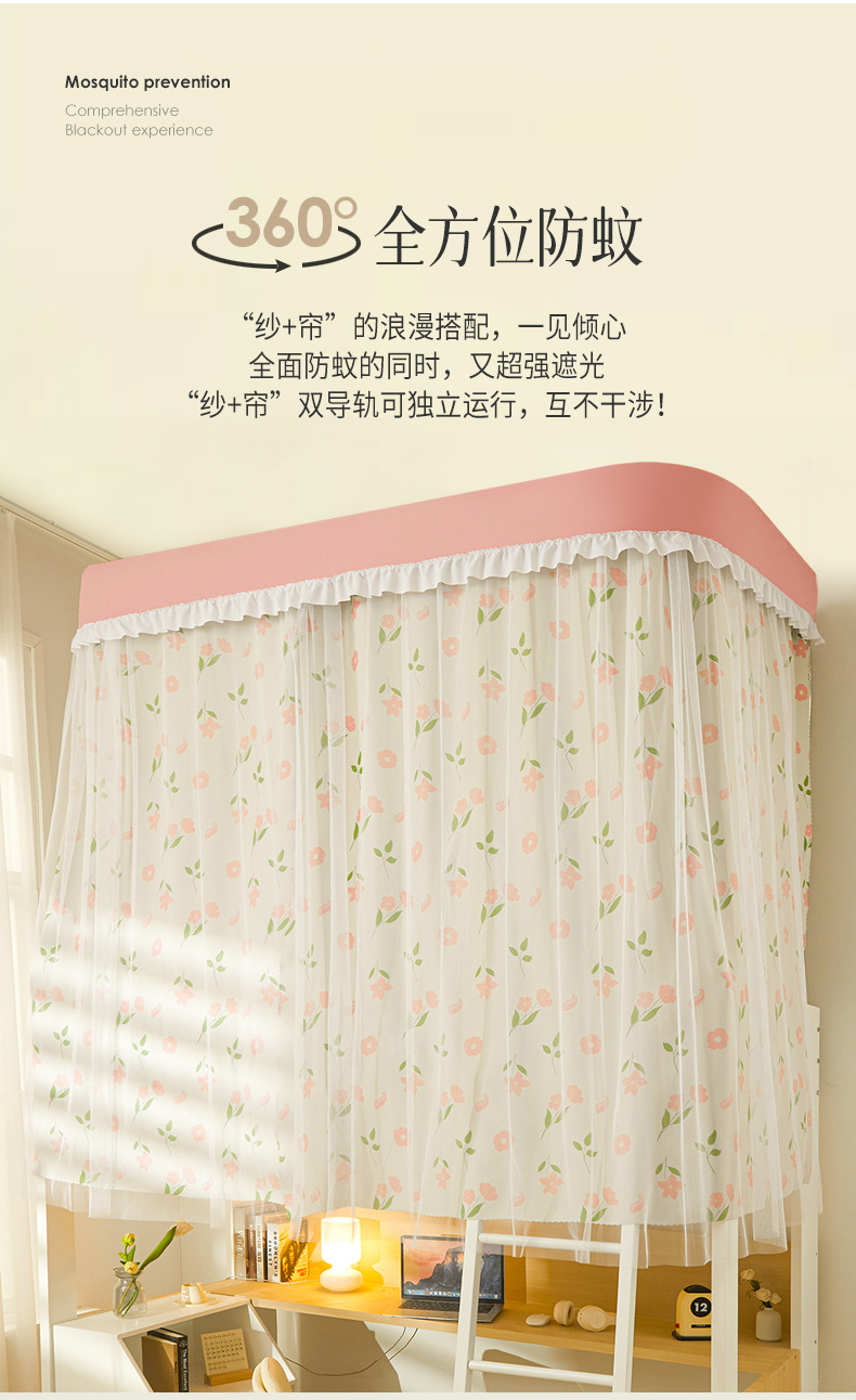학생 기숙사 모기장 강한 음영 상하 침대 커튼 침대 커튼 더블 레일 락터 목가적 인 기숙사 모기장스토어 가기