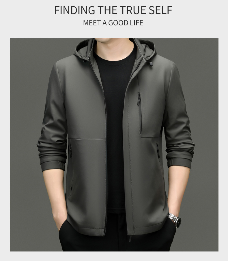 2025 새로운 남성 봄 사업 캐주얼 분리 모자 봄 및 가을 중년 남성 재킷 코트 남성복스토어 가기