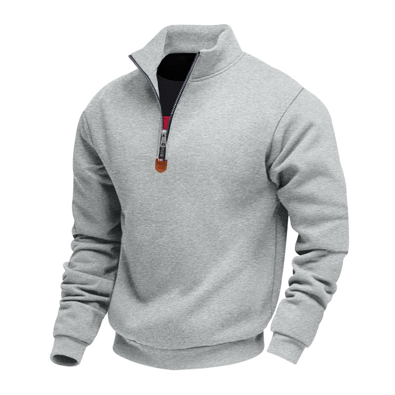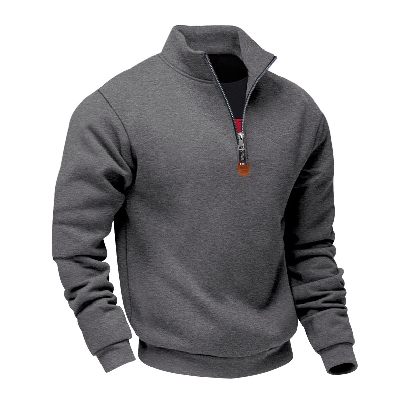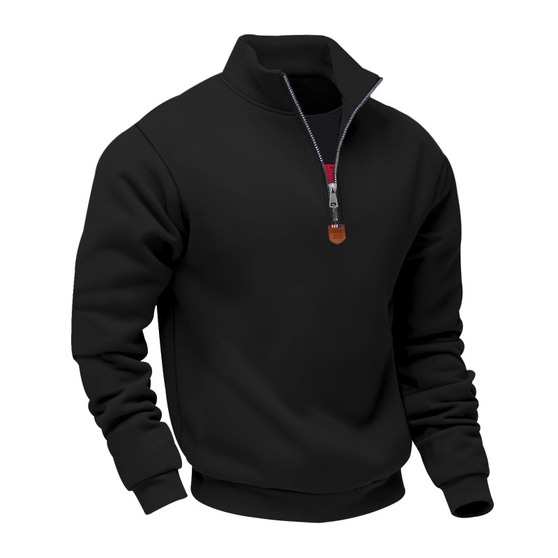 국경 간 아마존 아메리칸 스타일 헤비 기모 스킨 친화적 인 따뜻한 유지 남성 긴팔 반 지퍼 스포츠 캐주얼 땀