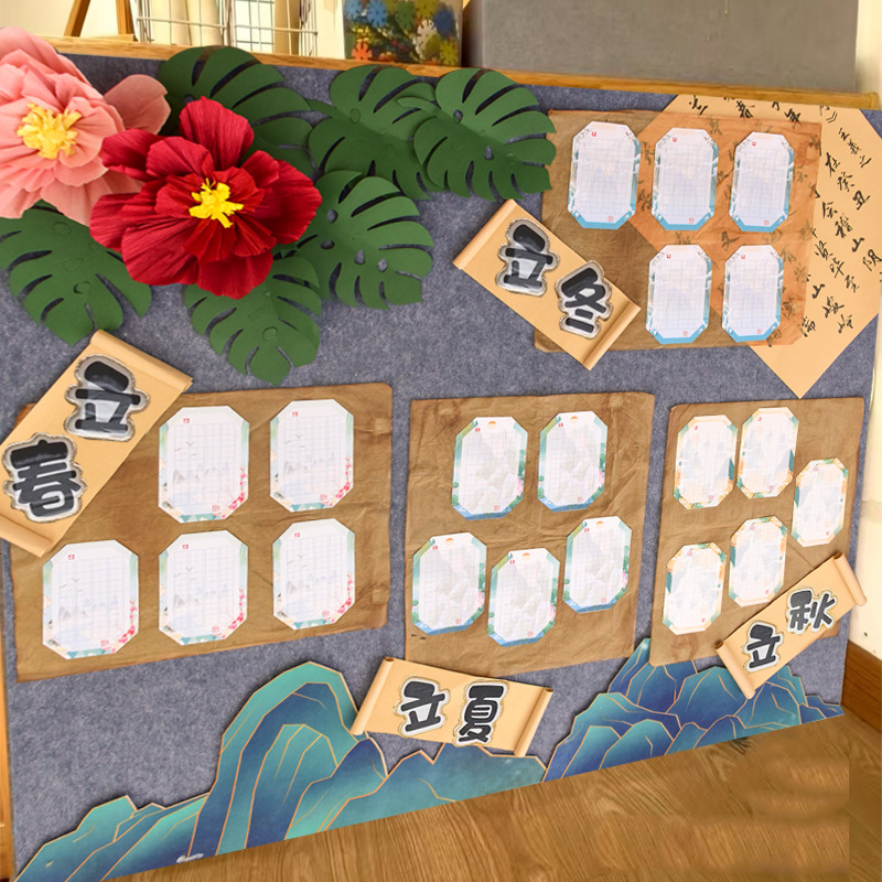 유치원 레이아웃 클래스 링 창조 장식 테마 영역 코너 지역 벽 서예 Tian Zi Ge 초등학교 고대시 고대 단어