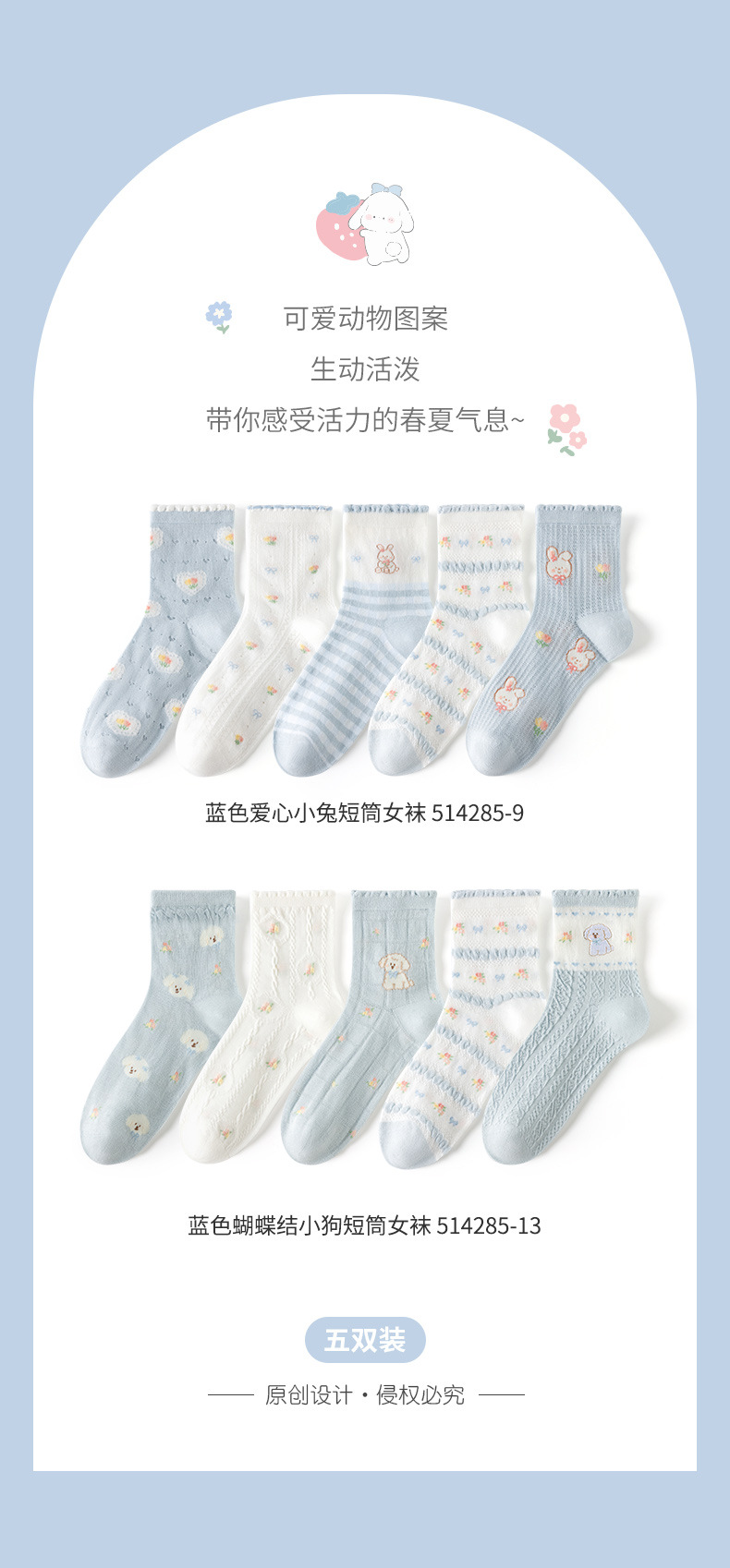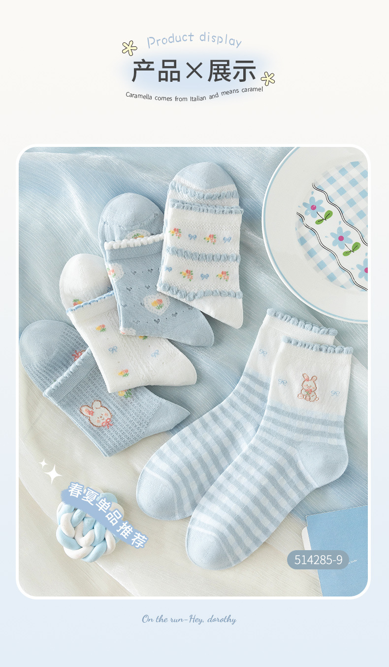 여성을위한 새로운 봄, 여름 양말 5 쌍 얇은 메쉬 짧은 양말 블루 레이스 만화 양말 귀여운 숙녀 양말스토어 가기