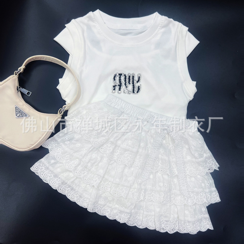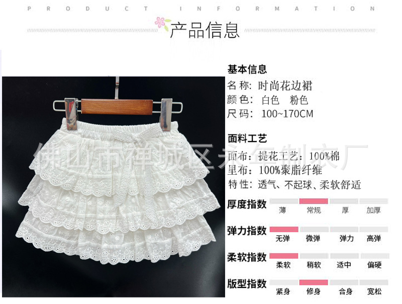 2025 봄과 여름 새로운 스타일 자카드 레이스 스커트 소녀 스커트 큰 어린이 달콤한 스타일 소녀 스커트스토어 가기