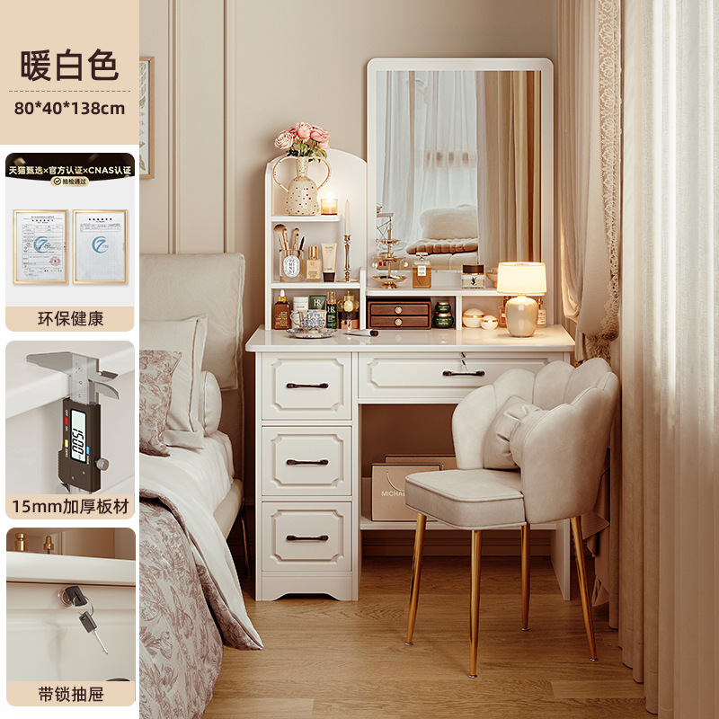 드레싱 테이블 현대 침실 간단한 마스터 침실 메이크업 테이블 2025 작은 아파트를위한 새로운 프랑스 스타일 메이크업 테이블 거울 보관 캐비닛