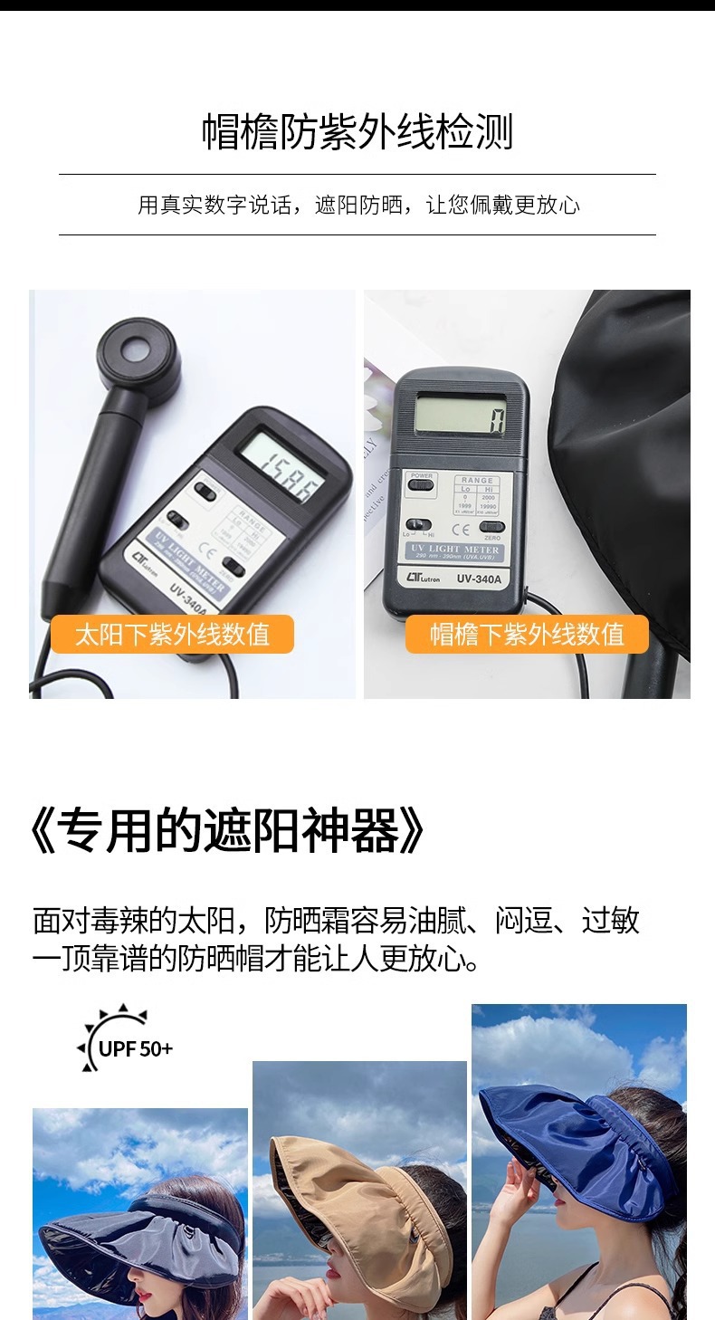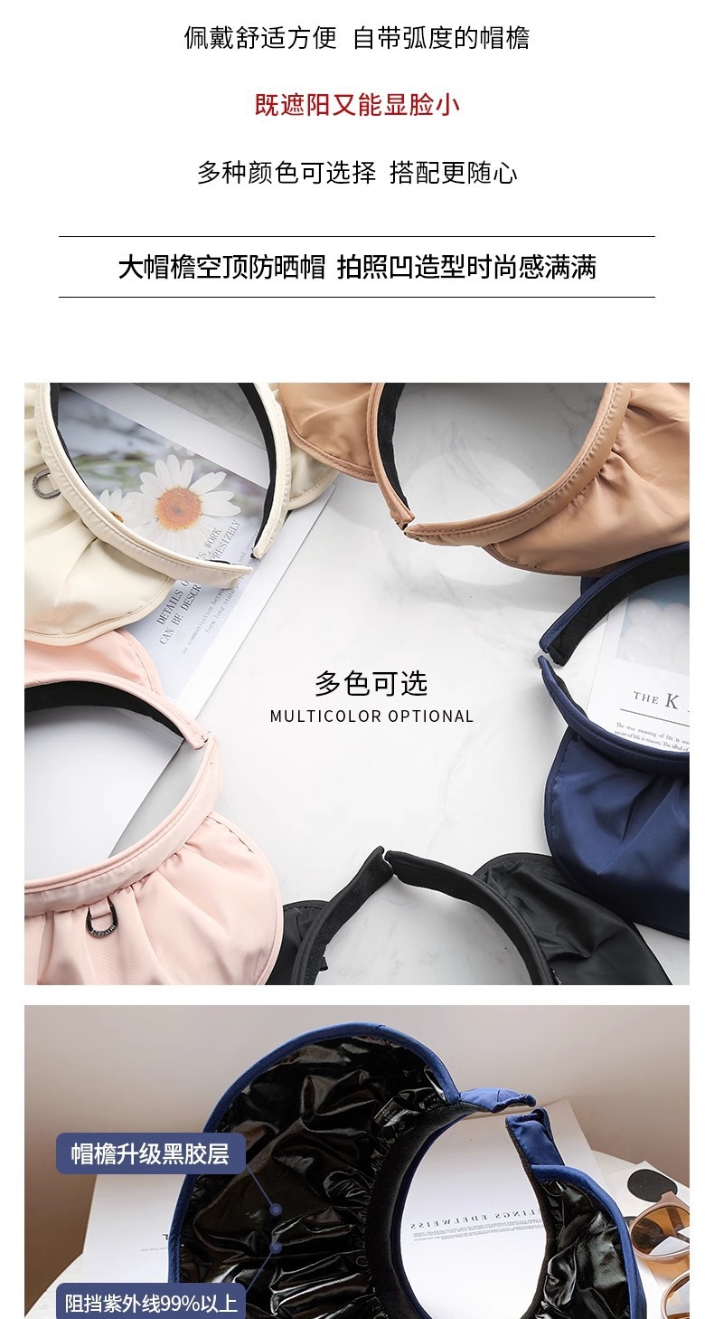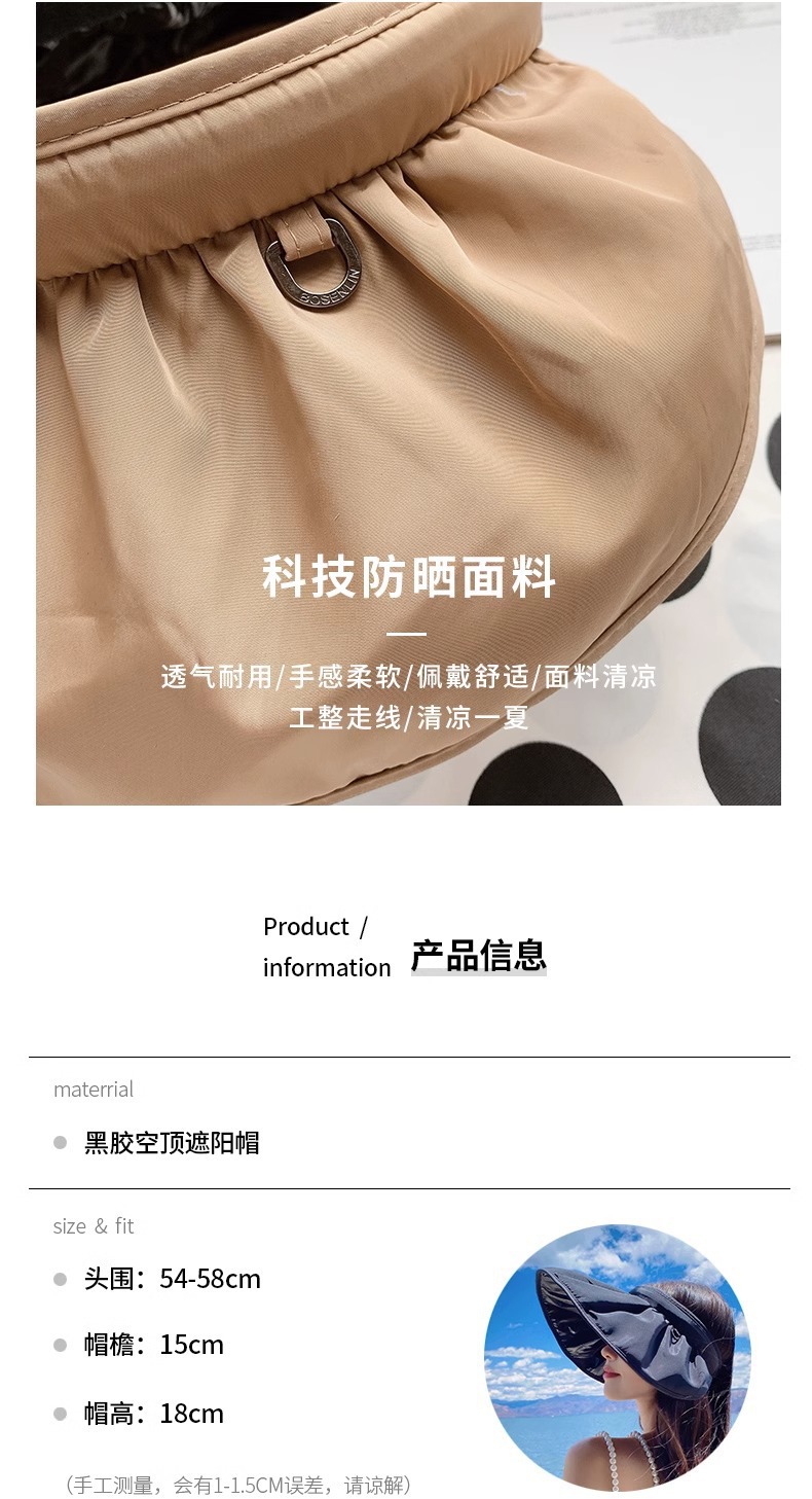 여름 선 스크린 모자 여성의 태양 그늘 안티-UV 빈 탑 블랙 고무 쉘 모자 빅 햇 브림 순 그늘 얼굴 야외 승마 모자