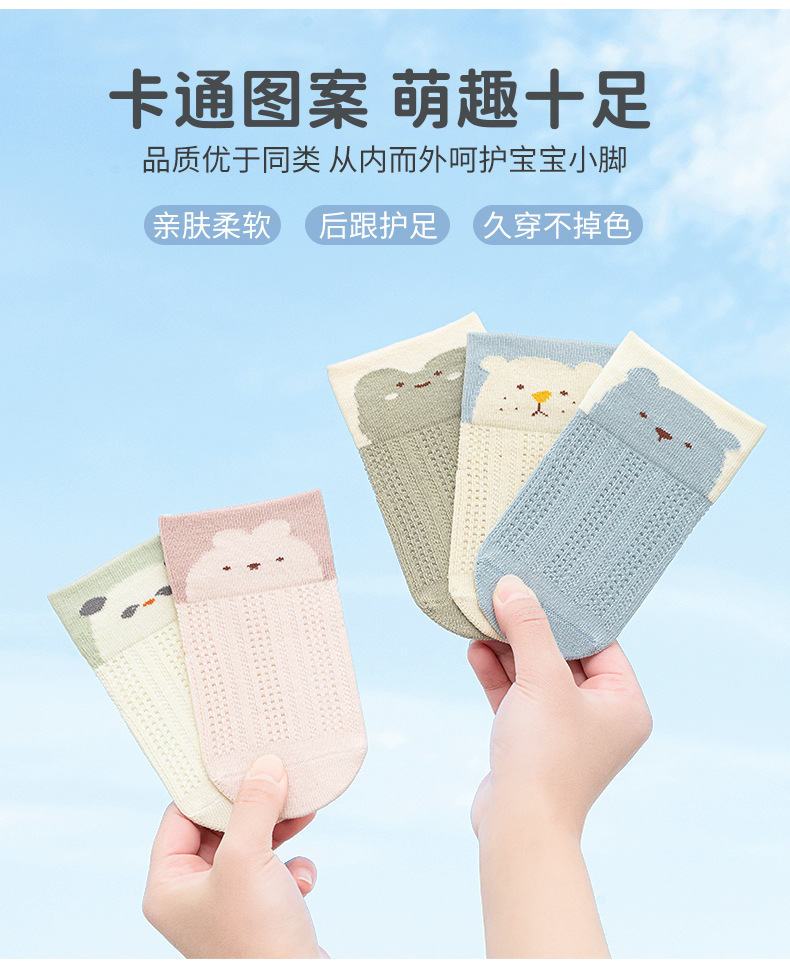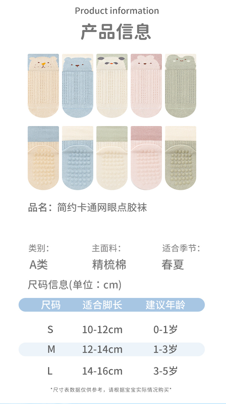 여름 얇은 통기성 아기 양말 만화 메쉬 아기 바닥 양말 분배 미끄럼 방지 어린이 유아 양말 쿨스토어 가기