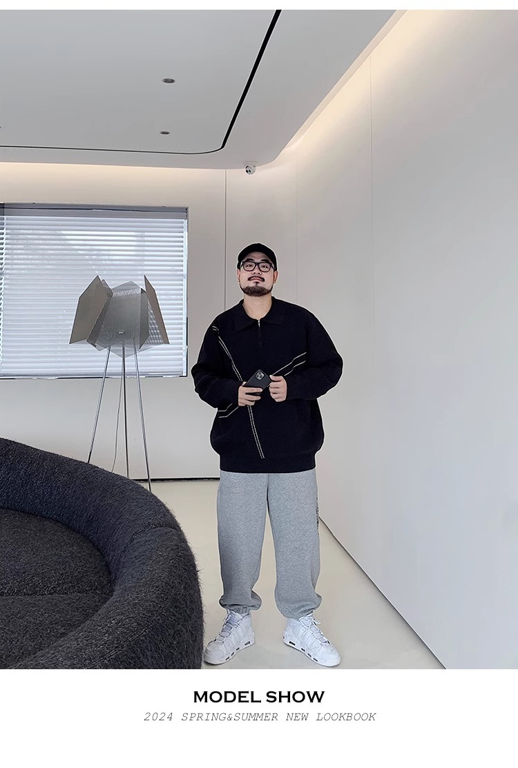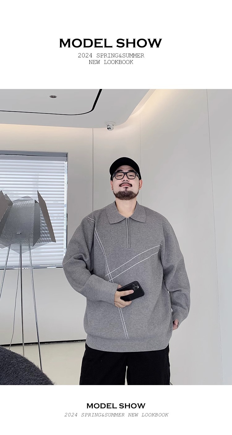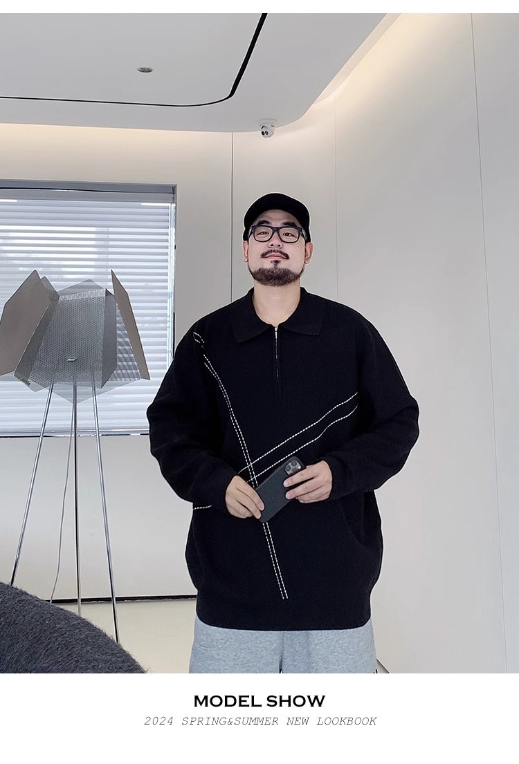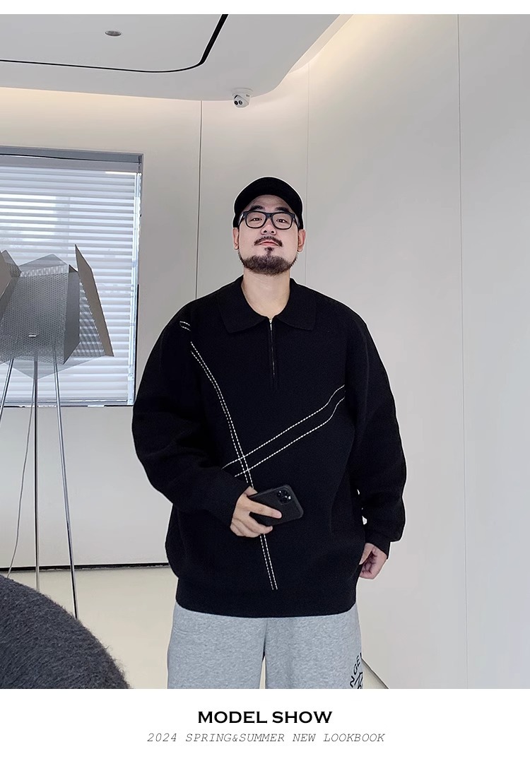 300 진 엑스트라 대형 겨울 반 지퍼 옷깃 스웨터 남성용 지방 느슨한 플러스 지방 증가 캐주얼 스웨터스토어 가기