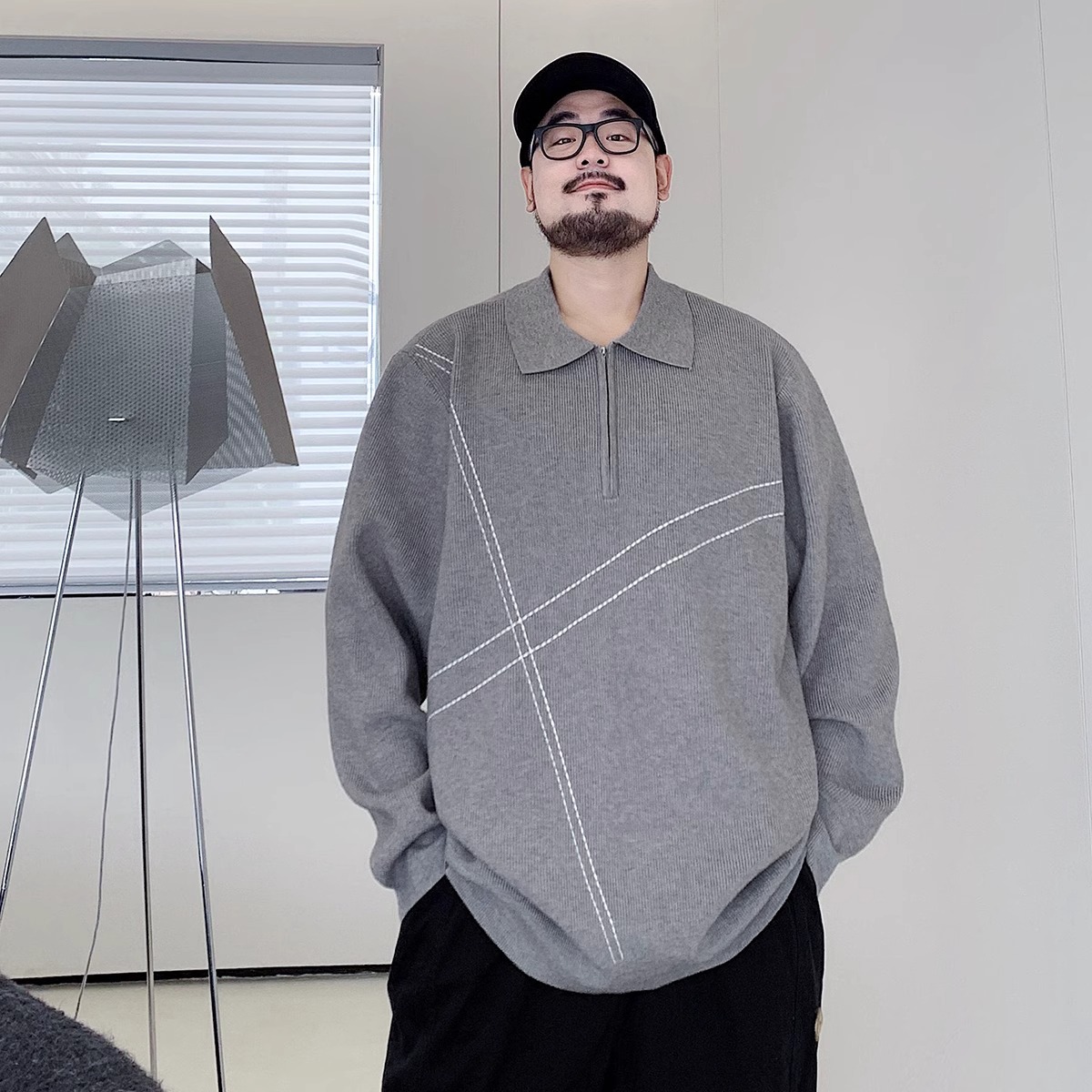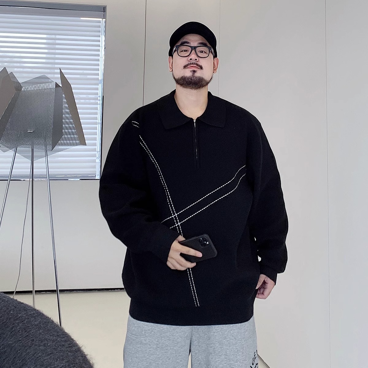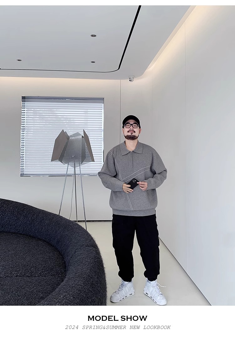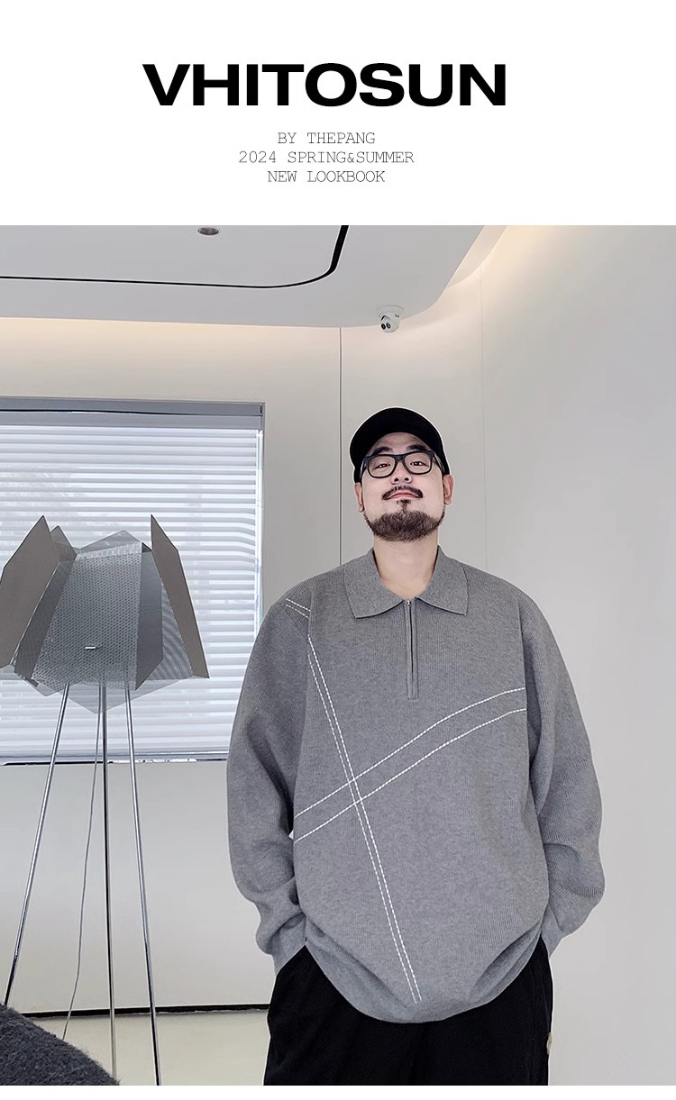 300 진 엑스트라 대형 겨울 반 지퍼 옷깃 스웨터 남성용 지방 느슨한 플러스 지방 증가 캐주얼 스웨터스토어 가기