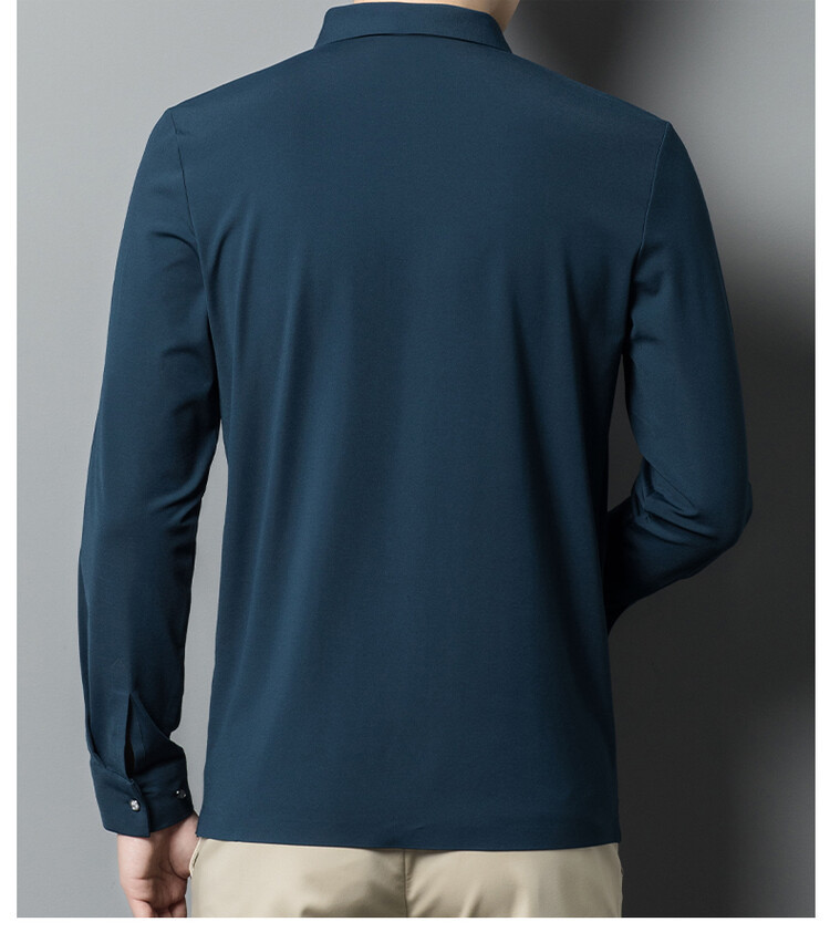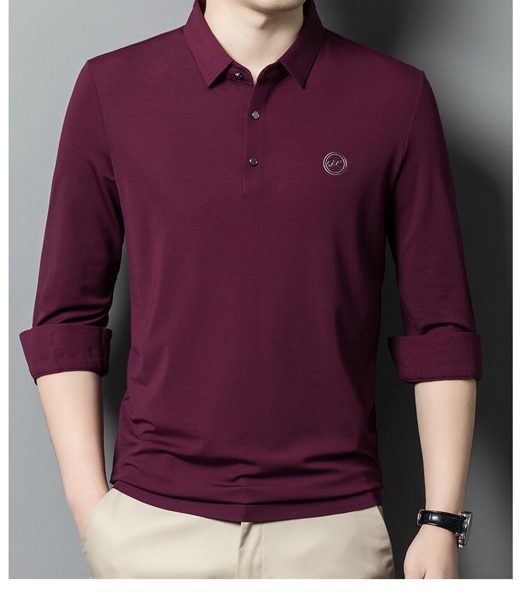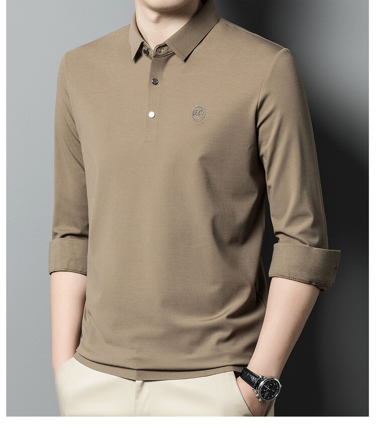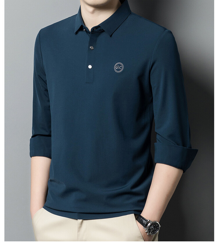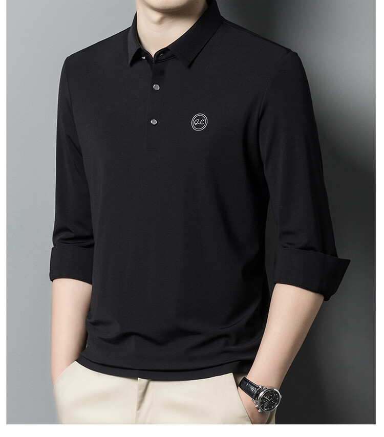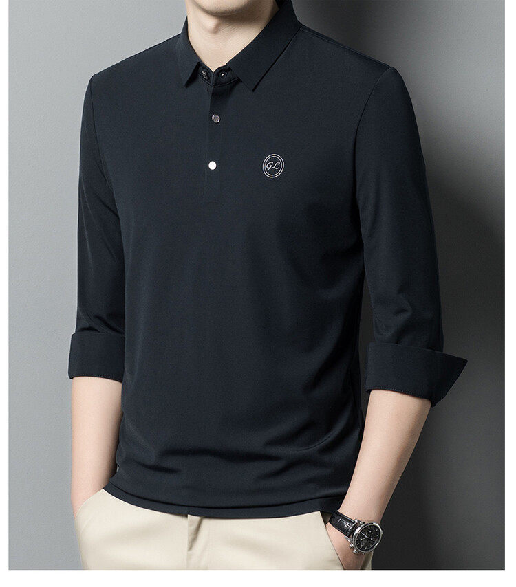 시아버지 Xi 2025 봄과 가을 새로운 남자 아이스 실크 긴팔 티셔츠 폴로 셔츠 다리 느슨한 캐주얼 탑