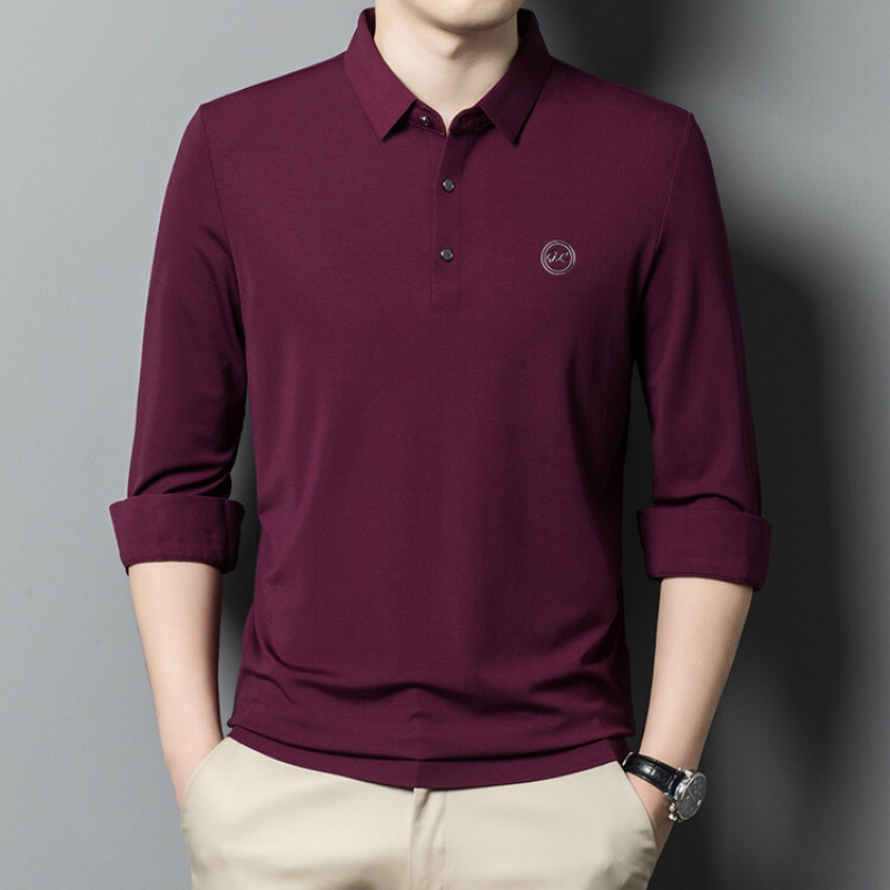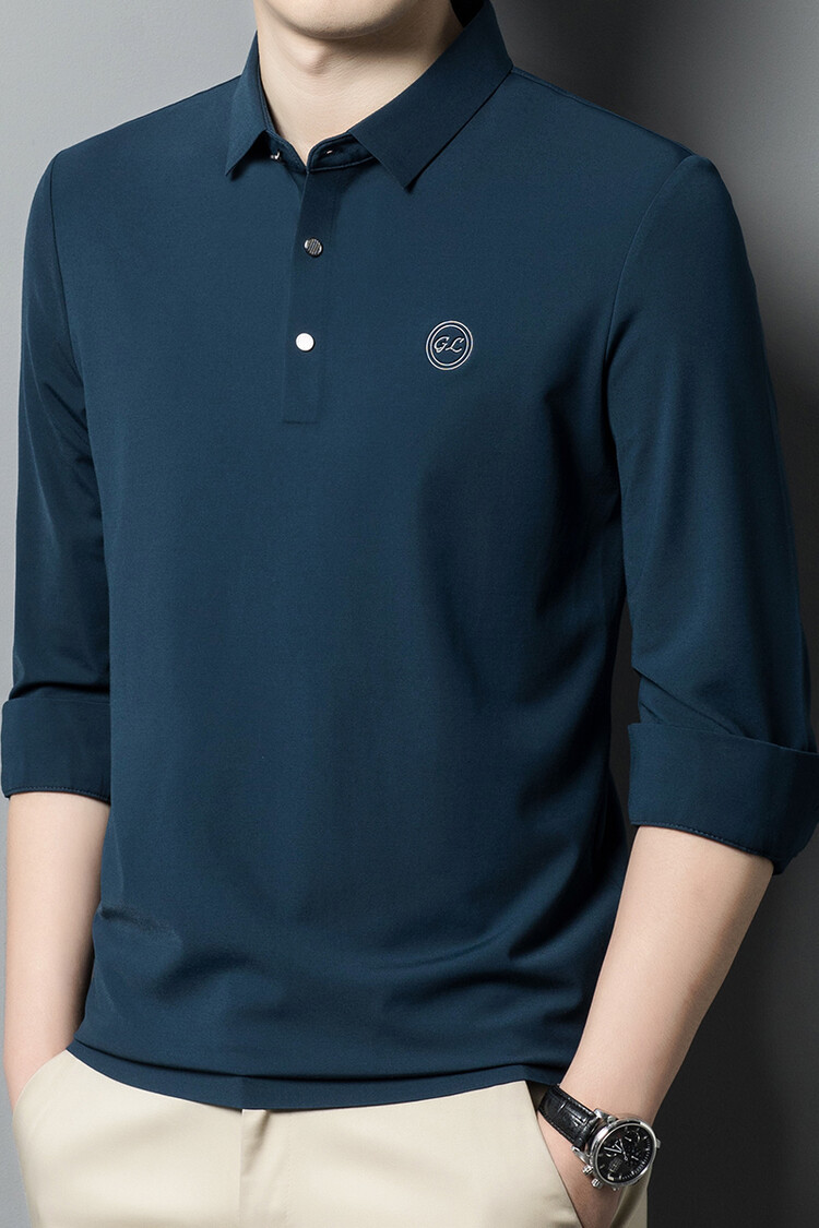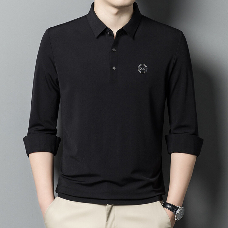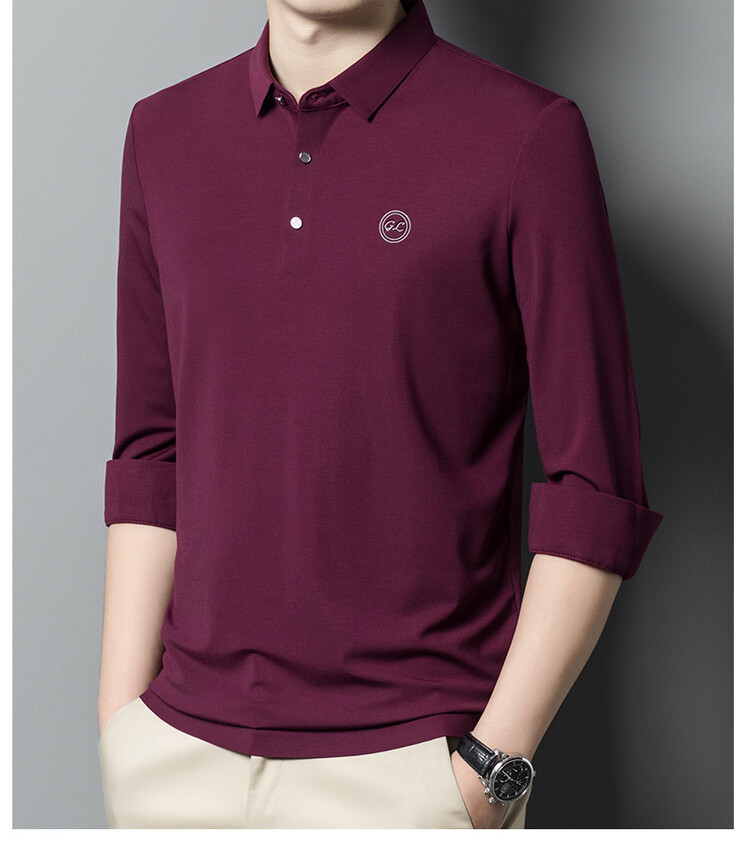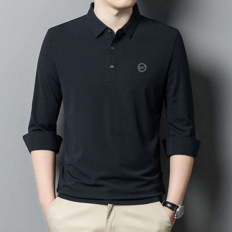 시아버지 Xi 2025 봄과 가을 새로운 남자 아이스 실크 긴팔 티셔츠 폴로 셔츠 다리 느슨한 캐주얼 탑