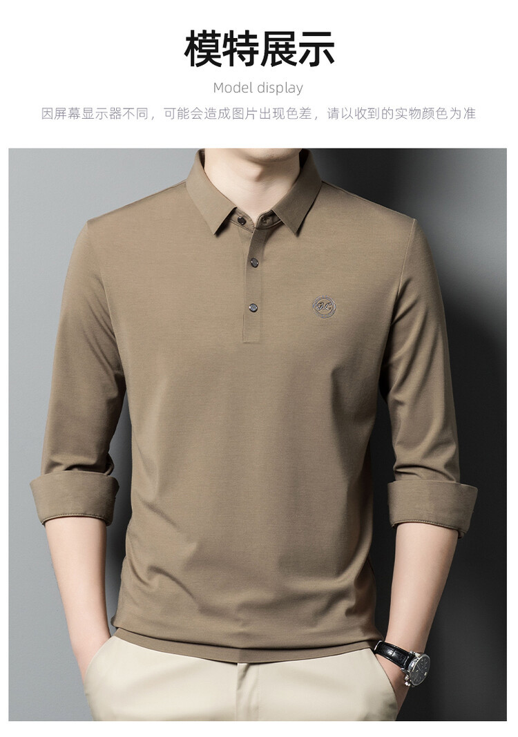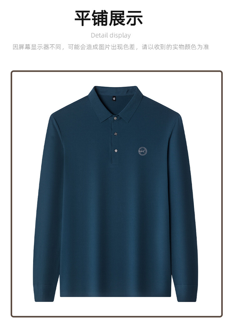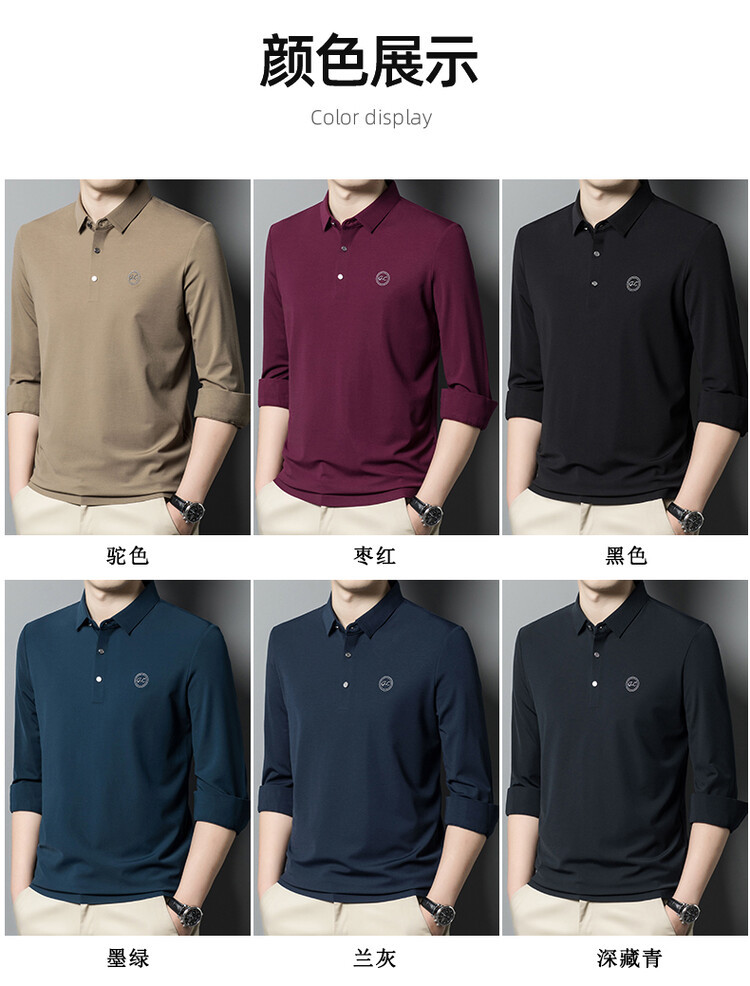 시아버지 Xi 2025 봄과 가을 새로운 남자 아이스 실크 긴팔 티셔츠 폴로 셔츠 다리 느슨한 캐주얼 탑스토어 가기