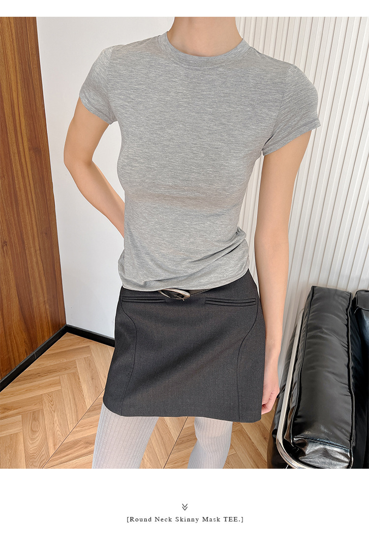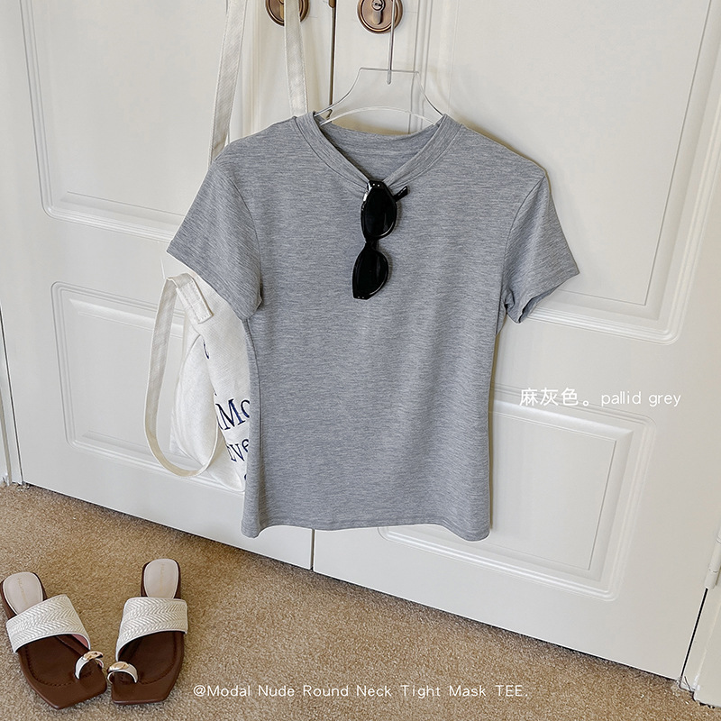 여름 시원한 흰색 모달 라운드 넥 마스크 여성용 반팔 티셔츠 편안한 오른쪽 어깨 탑 슬리밍 의류스토어 가기