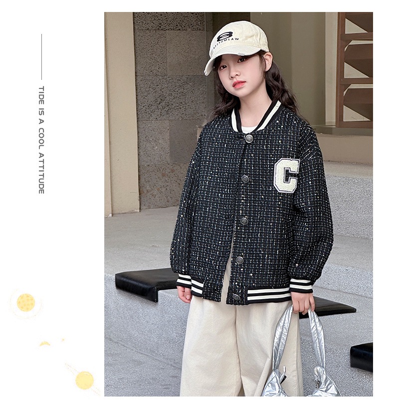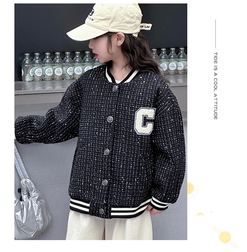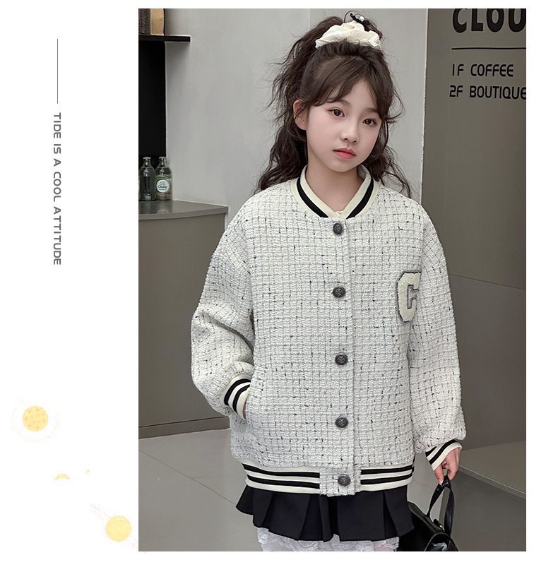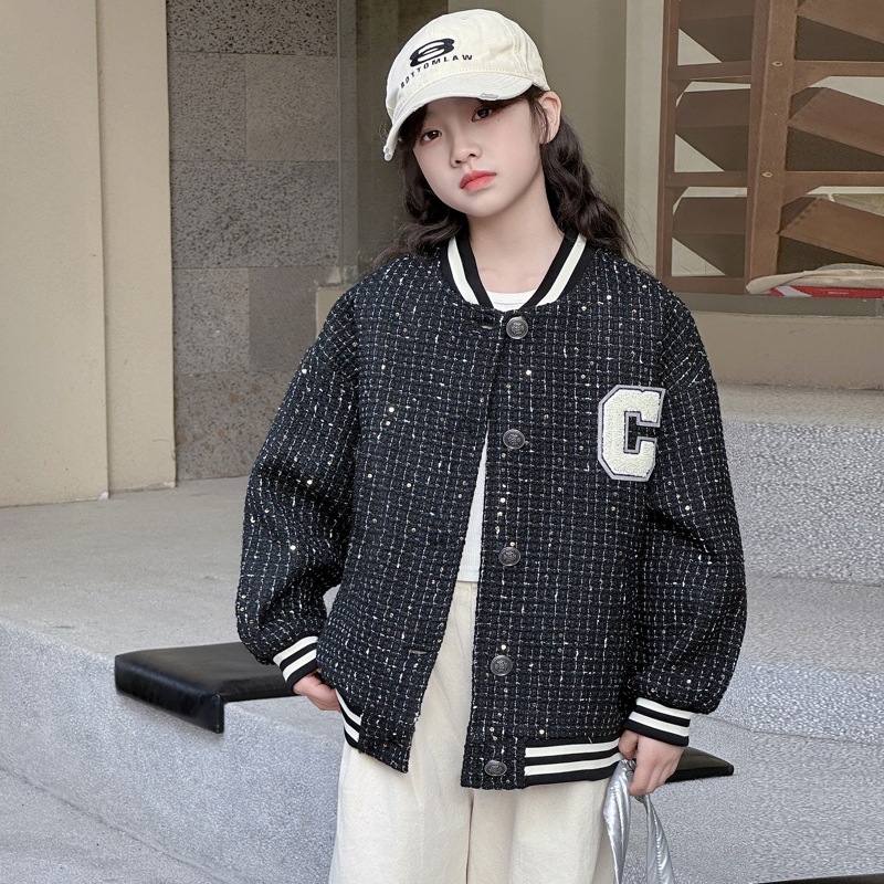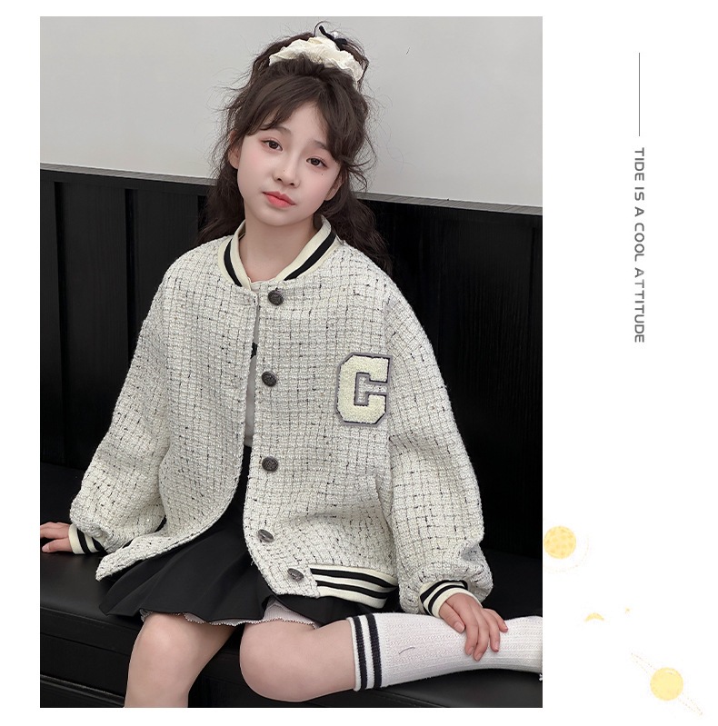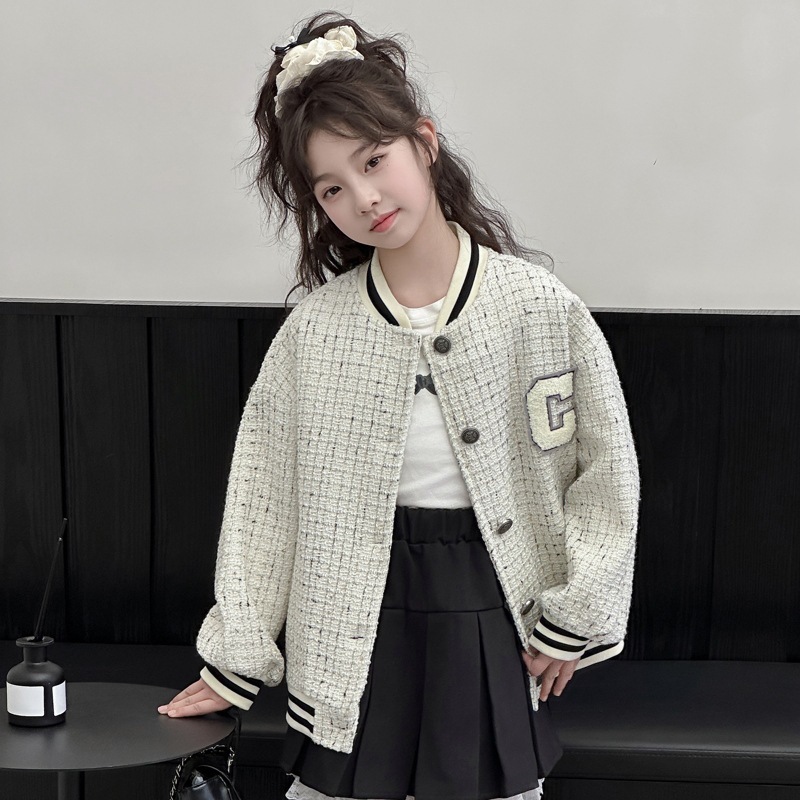 소녀의 샤넬 스타일 야구 세트 코트 2025 새로운 봄 큰 어린이 봄과 가을 재킷 소녀의 탑스토어 가기