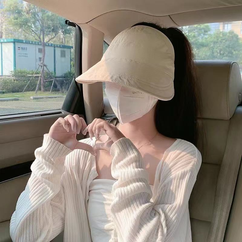 여름 모자 자외선 차단제 모자 반 빈 상단 차양 모자 마스크 빠른 건조 천 Zhao Ruth와 포니 테일스토어 가기